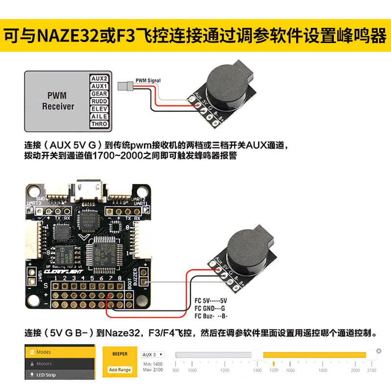MATEK穿越机F3飞控有源蜂鸣器BB响失控追踪报警器1W编程喇叭F722
