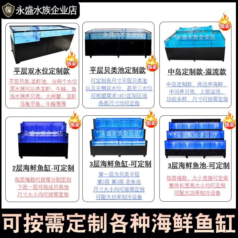 海鲜池商用海鲜鱼池移动海鲜缸贝类池淡水海鲜饭店鱼缸制冷海鲜池