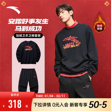 安踏好事发生运动服套装情侣款2026新款加绒卫衣套头衫两件套男女