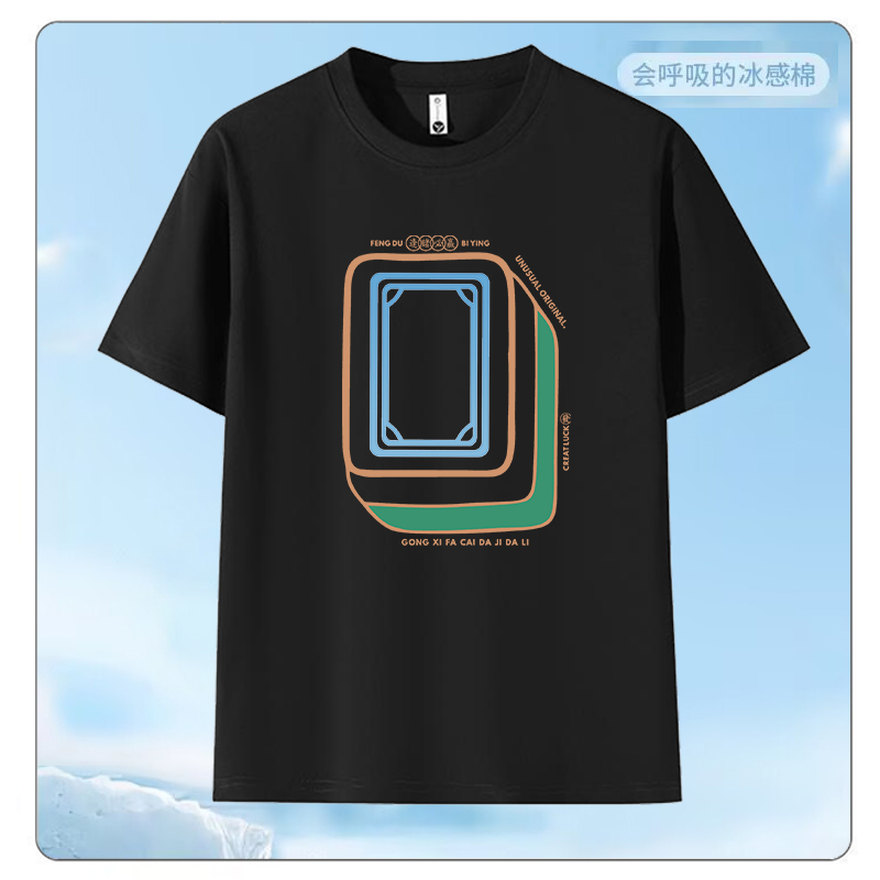创意麻将T恤红中发财白板筒子万子条子印花棉质短袖衣服男女夏季