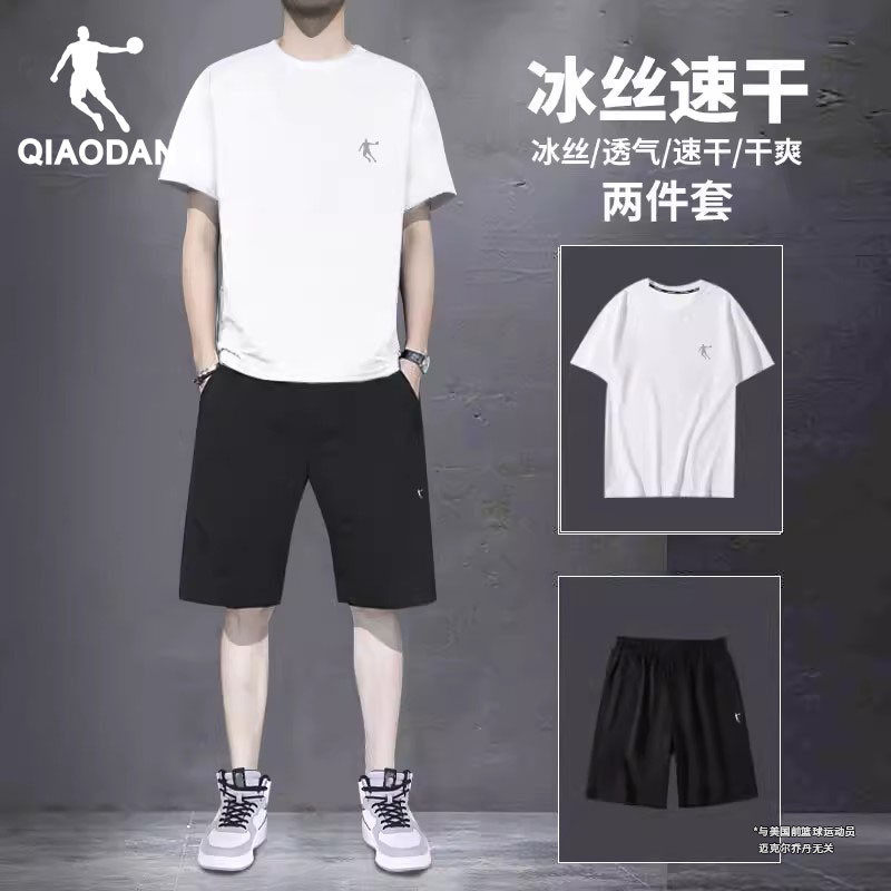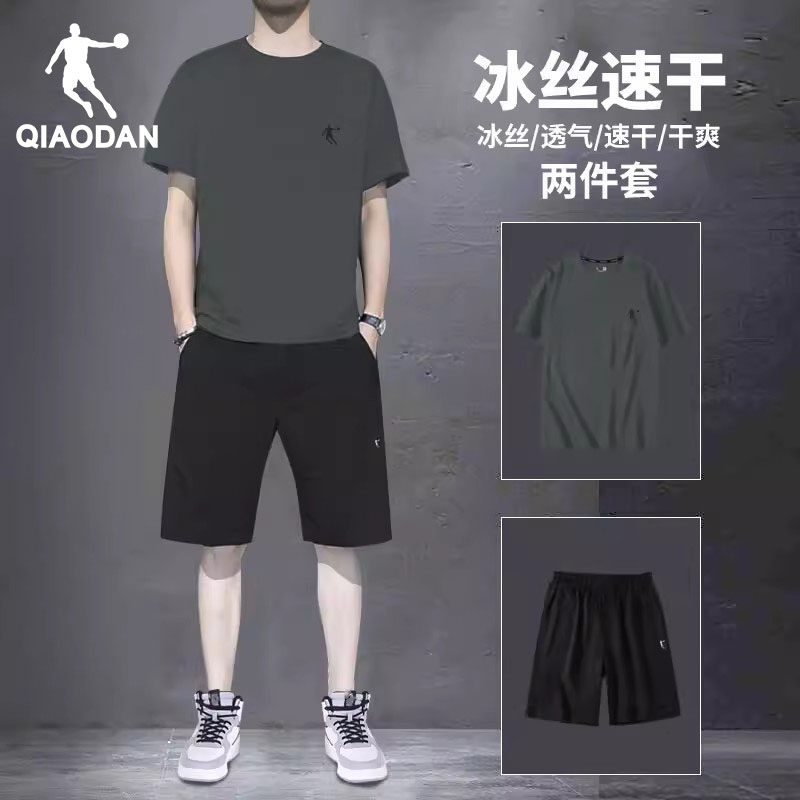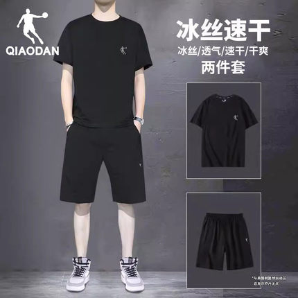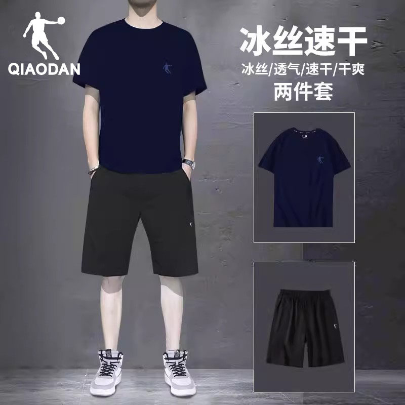 乔丹运动套装男士冰丝跑步短袖T恤速干短裤夏装休闲健身服两件套