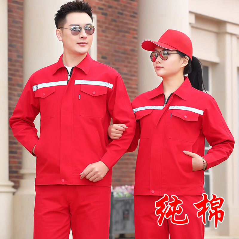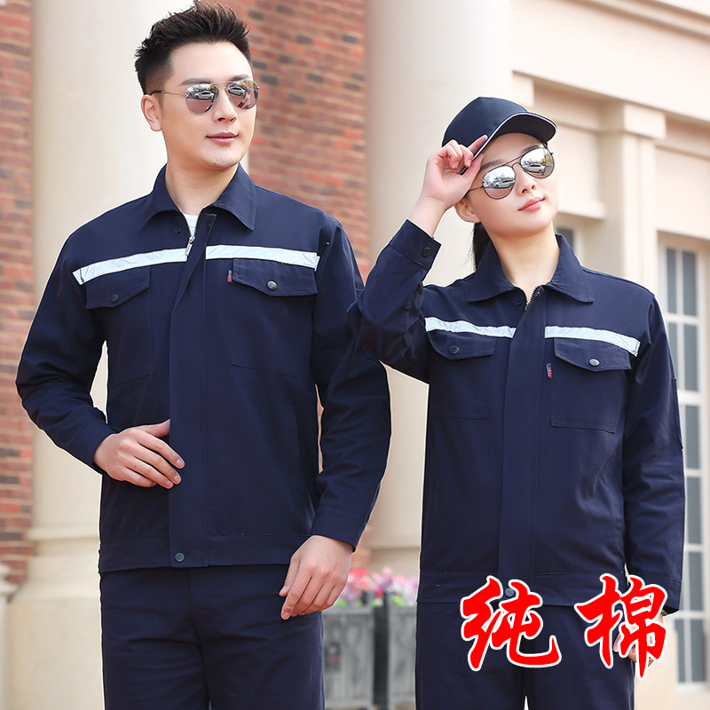 反光条电焊纯棉工作服套装男长袖春秋全棉防烫加厚定制劳保服上衣