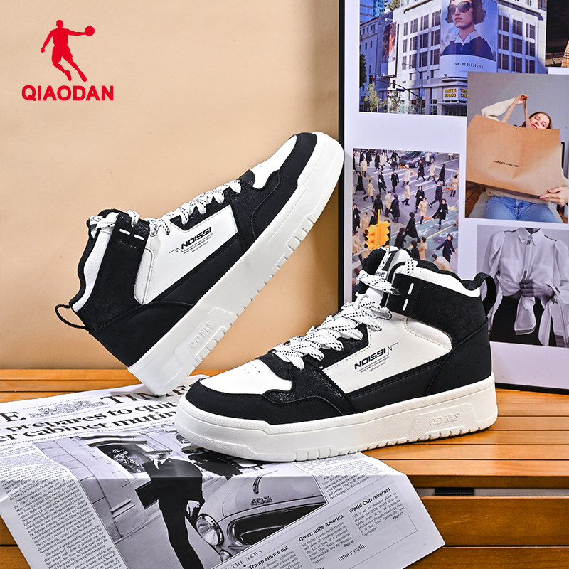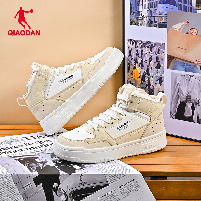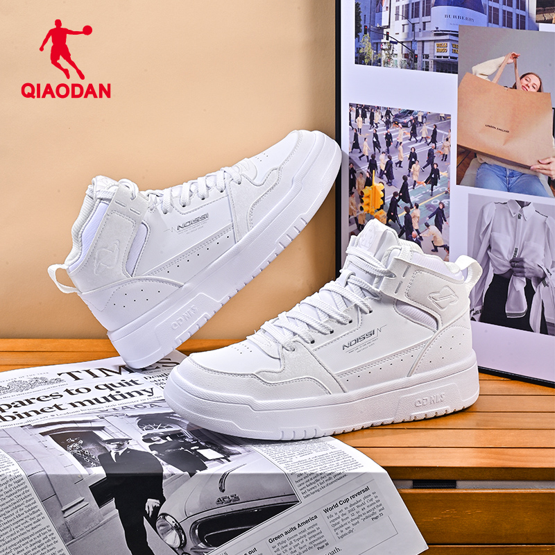 乔丹高帮女鞋运动鞋女款秋季款休闲鞋时尚情侣鞋厚底增高皮面板鞋