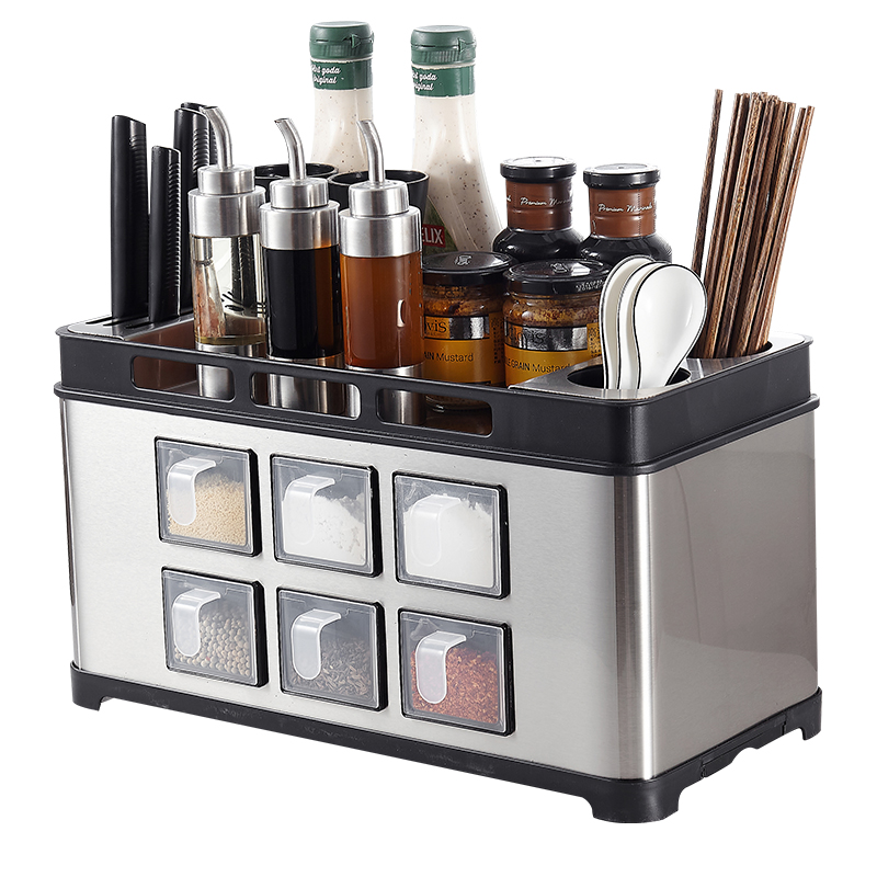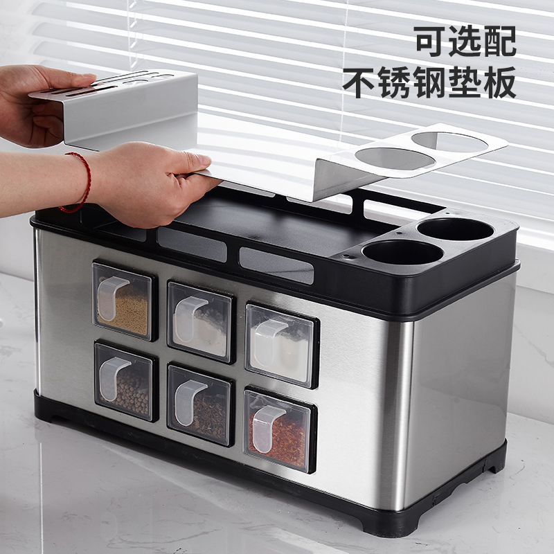 厨房调味料收纳盒套装不锈钢收纳置物架调味品罐子台面调料瓶刀架
