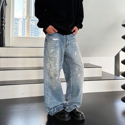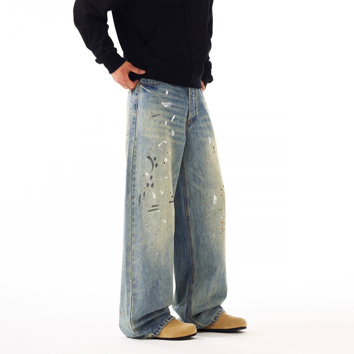 YORAINBOW 春季泼墨直筒cleanfit水洗牛仔裤美式复古松弛阔腿男女