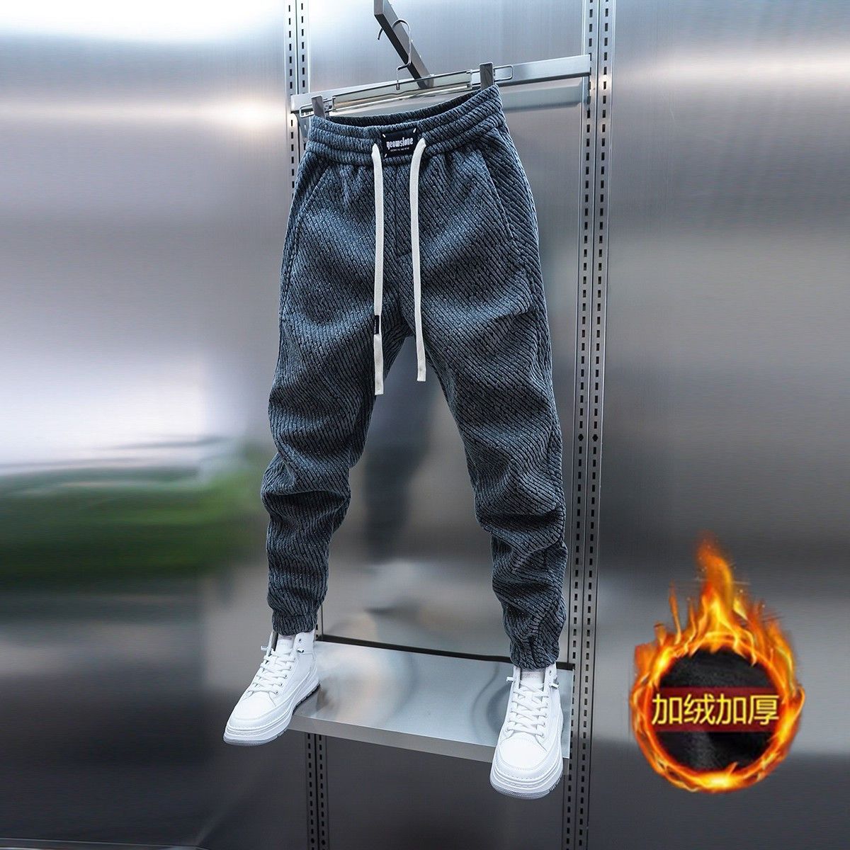 潮流男士秋冬加绒加厚休闲裤弹力松紧腰束脚裤百搭宽松运动卫裤