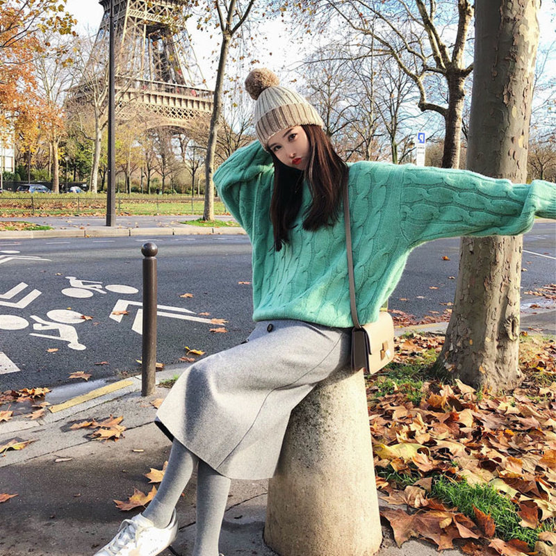 秋装新款2024圆领短款毛衣女套头宽松慵懒风针织衫百搭春秋打底衫