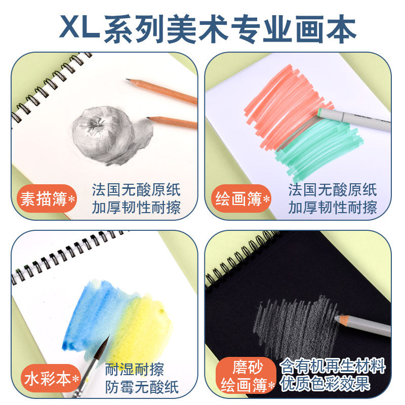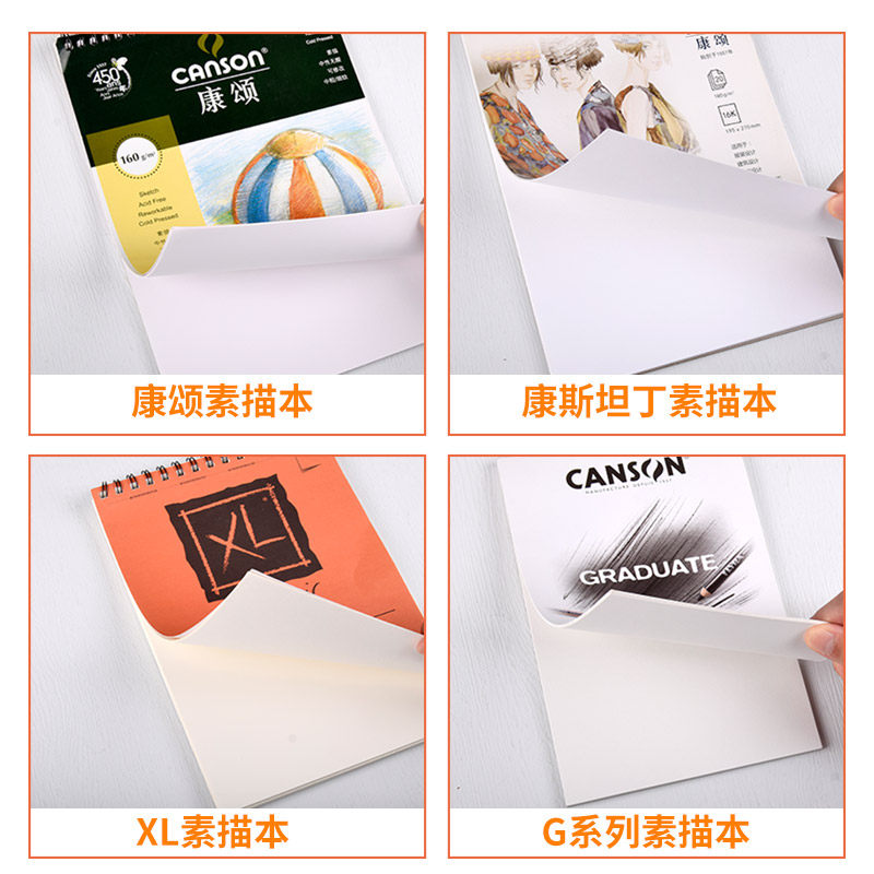 法国CANSON康颂XL素描本8k速写本a4美术生绘画簿水彩本16开细纹素描纸A4彩铅空白手账本上翻马克笔本丙烯本