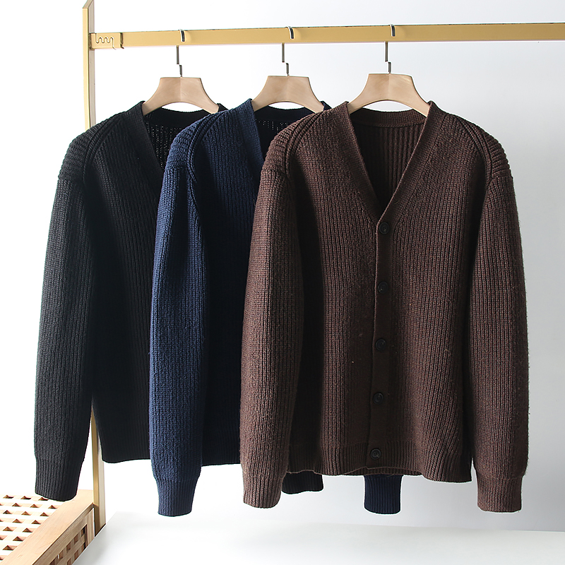 重磅!100绵羊毛!秋冬男士外贸时尚休闲百搭V领开衫针织毛衣外套