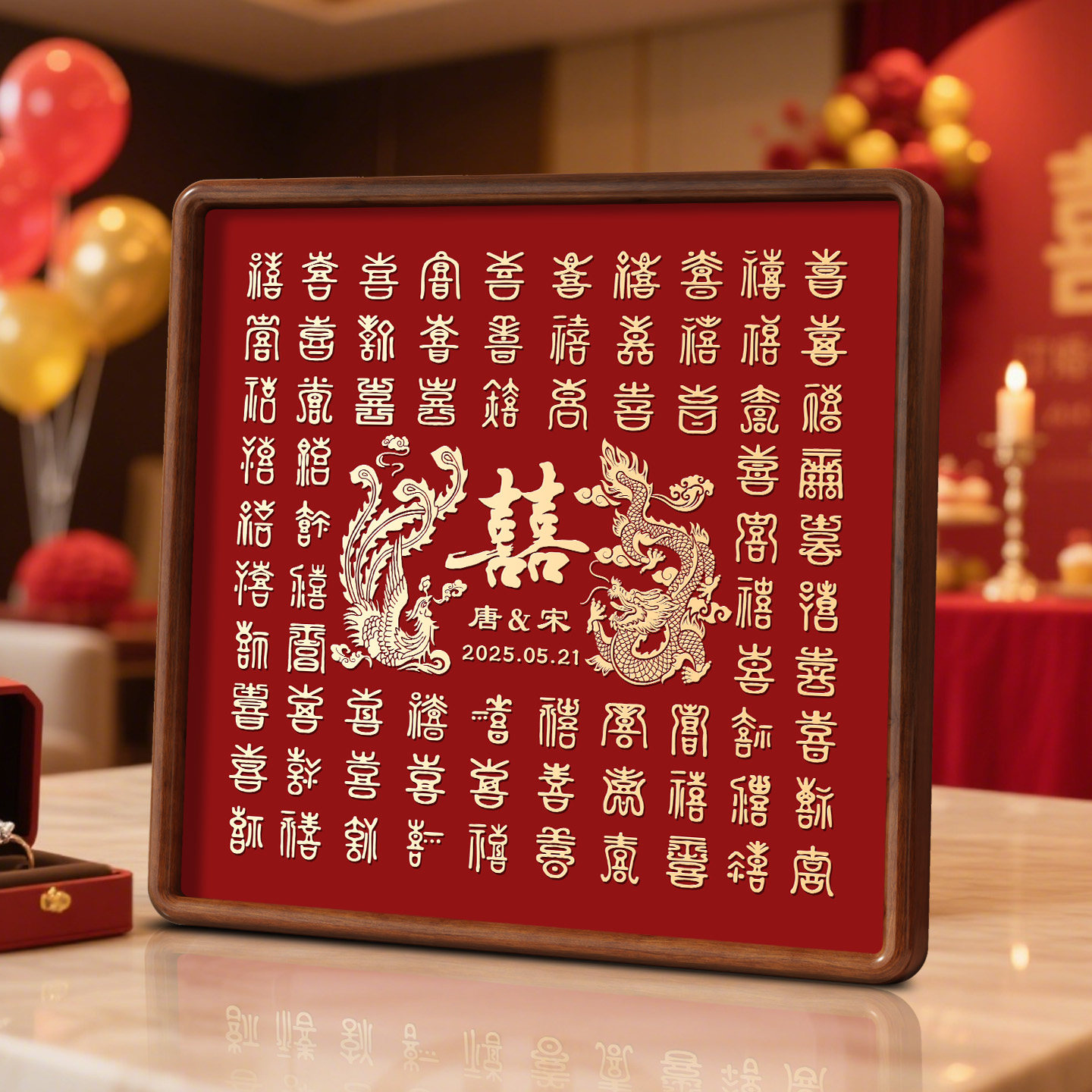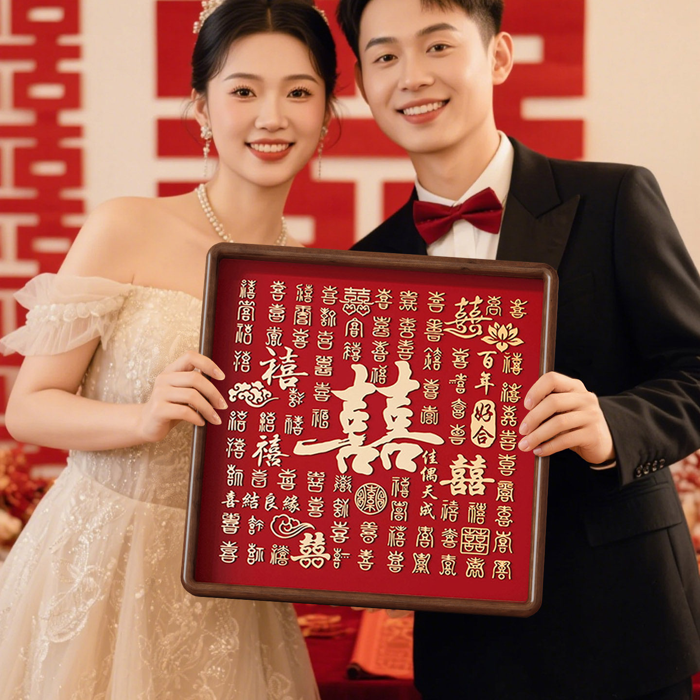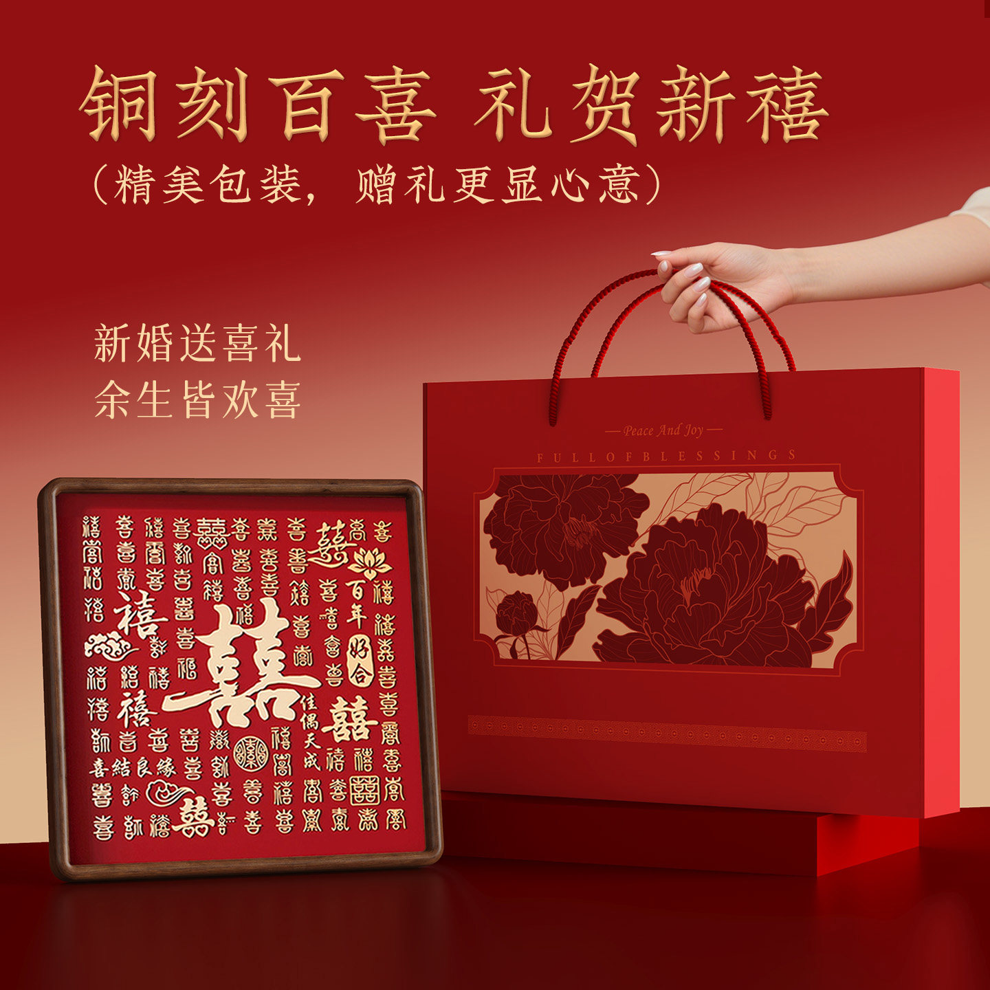百喜图新婚礼物送新人高级实用结婚订婚婚礼摆件高档铜雕百囍图