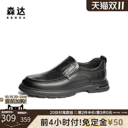 森达休闲皮鞋男士2025春季新款商场同款简约休闲平底皮鞋1VG02AM5