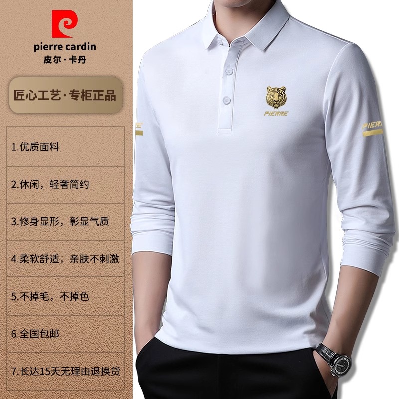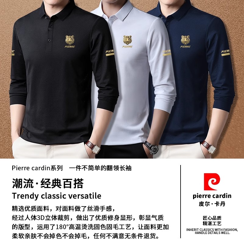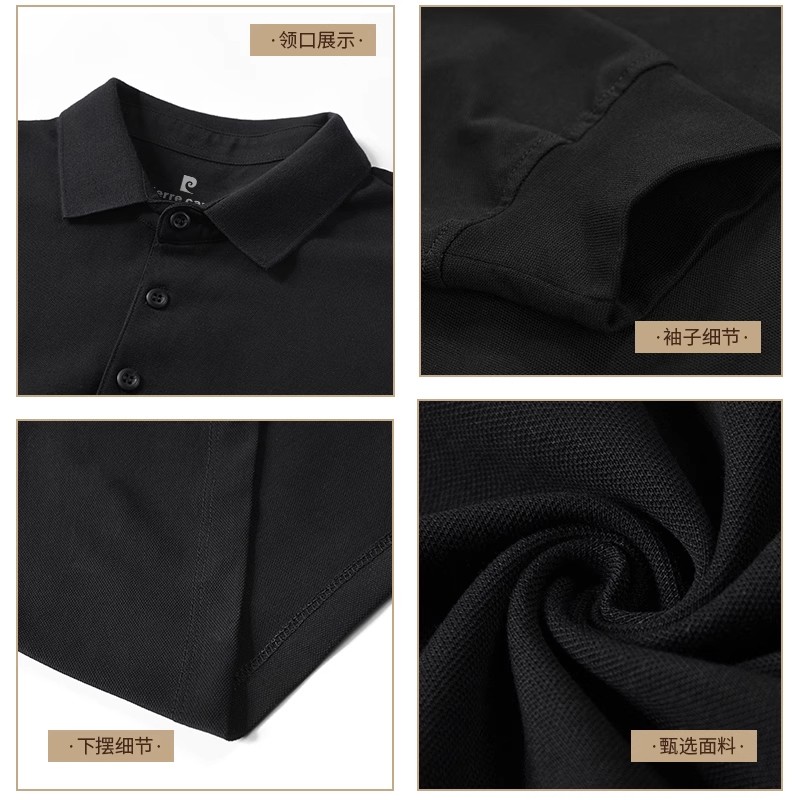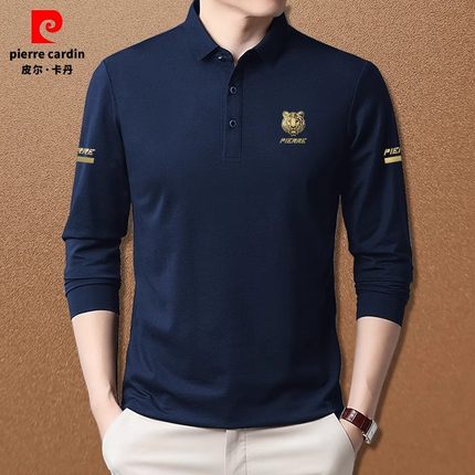 皮尔卡丹翻领上衣男长袖polo衫商务休闲中青年修身带领保罗t恤衫