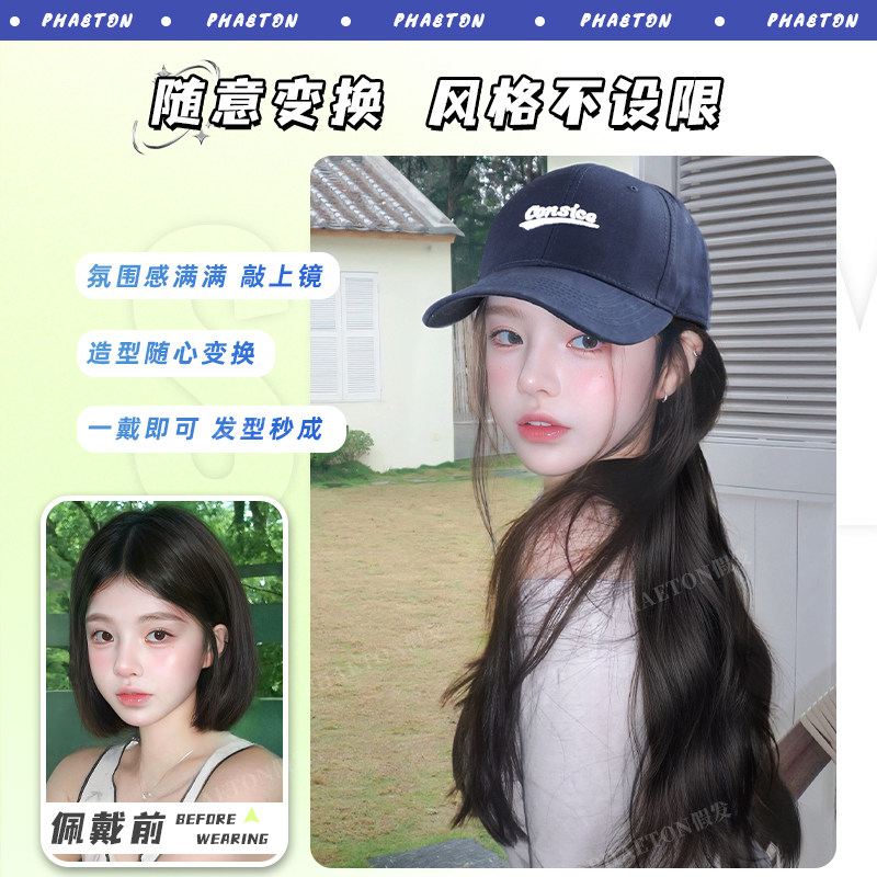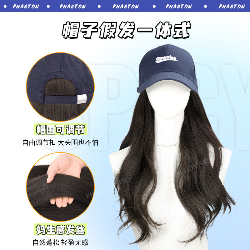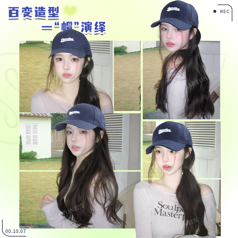 帽子假发一体式全头套自然仿真发女韩系爆款微卷氛围感棒球假发帽