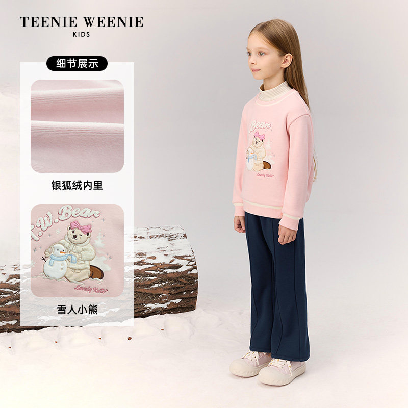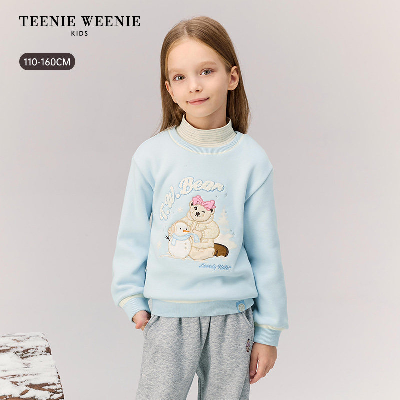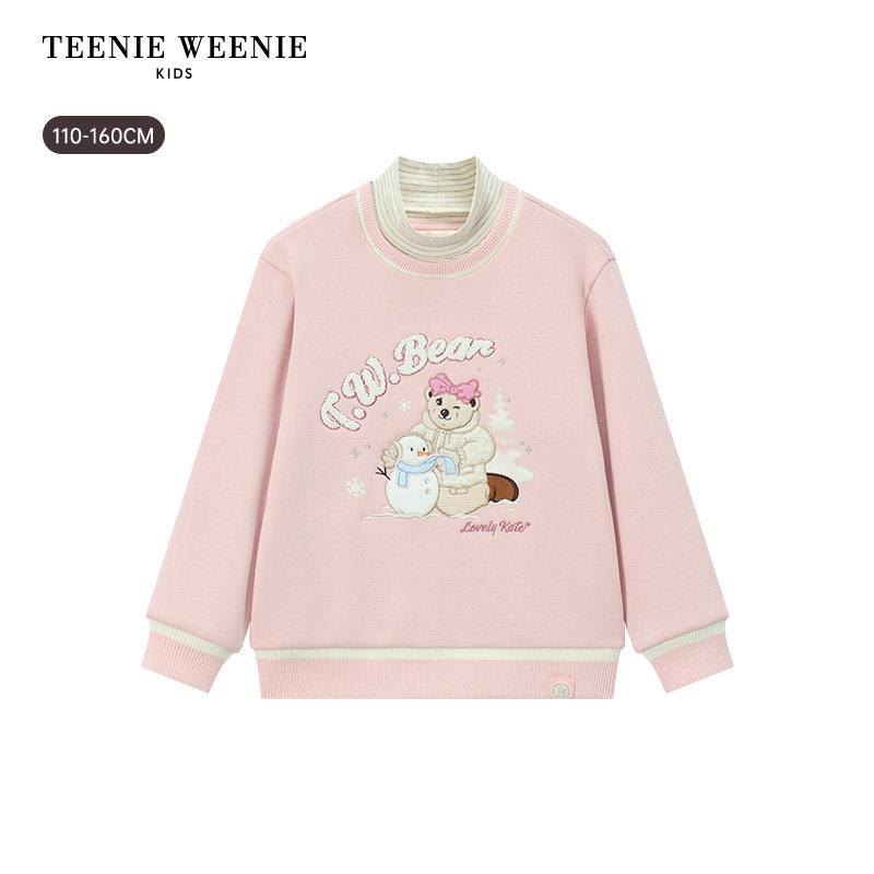 TeenieWeenie Kids小熊童装25年秋冬季女童假两件半高领加绒卫衣