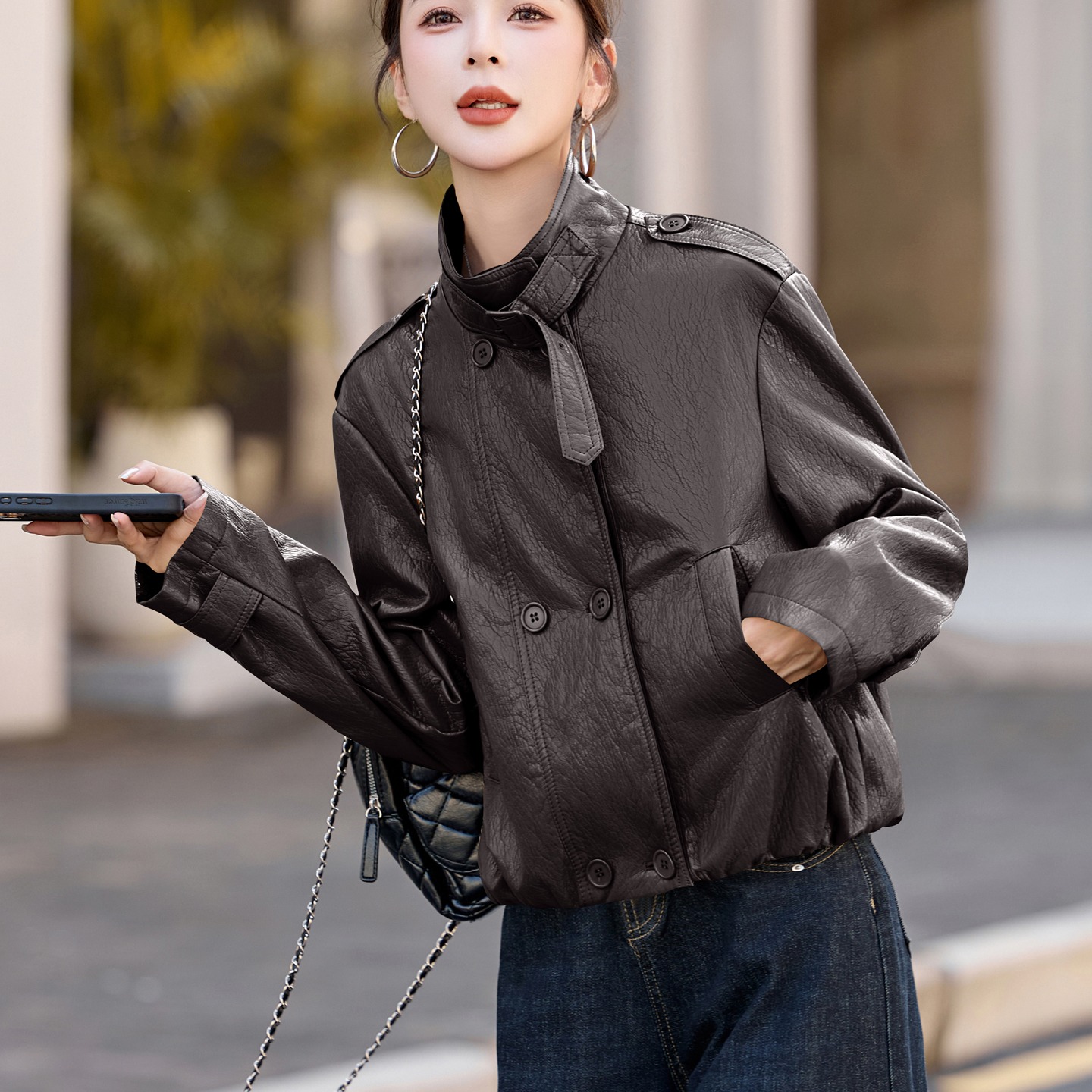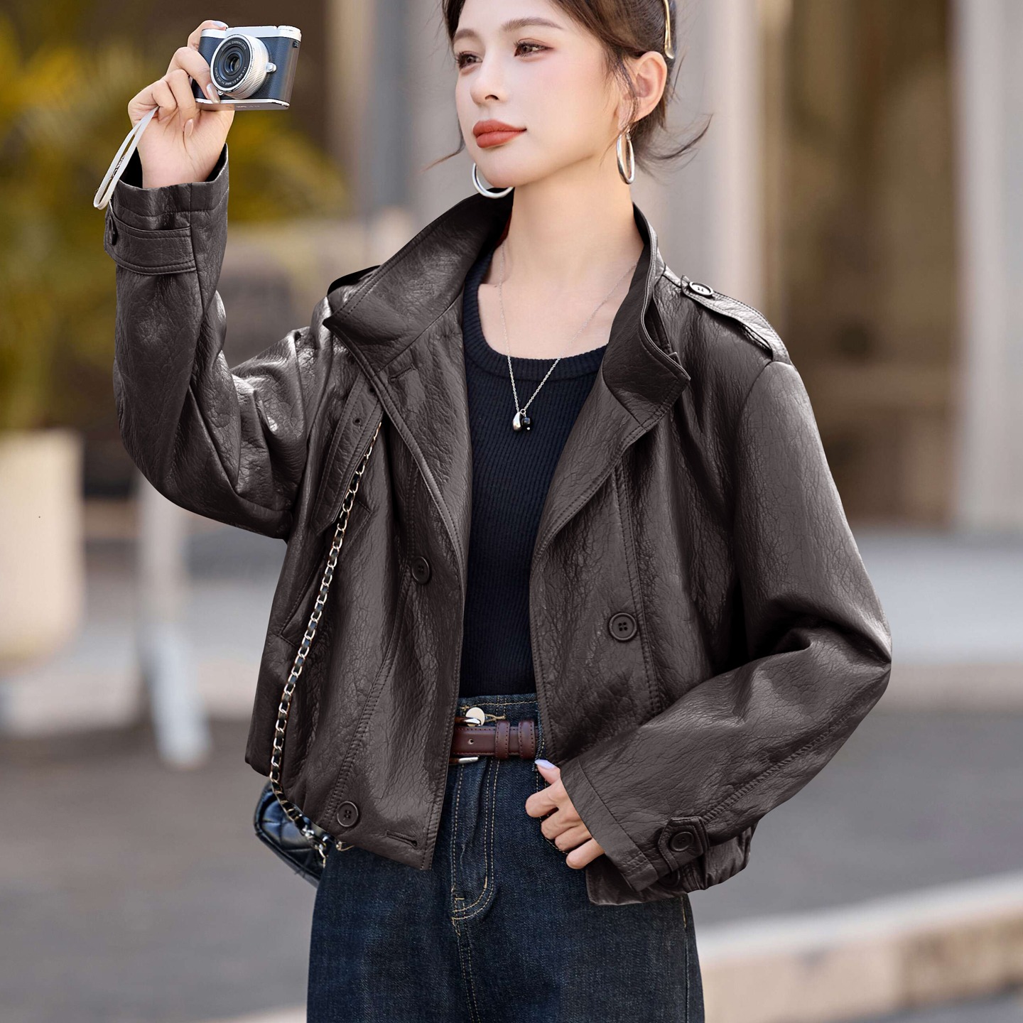 2025年秋季新款短款皮衣外套女翻领机车风小个子高级感皮夹克