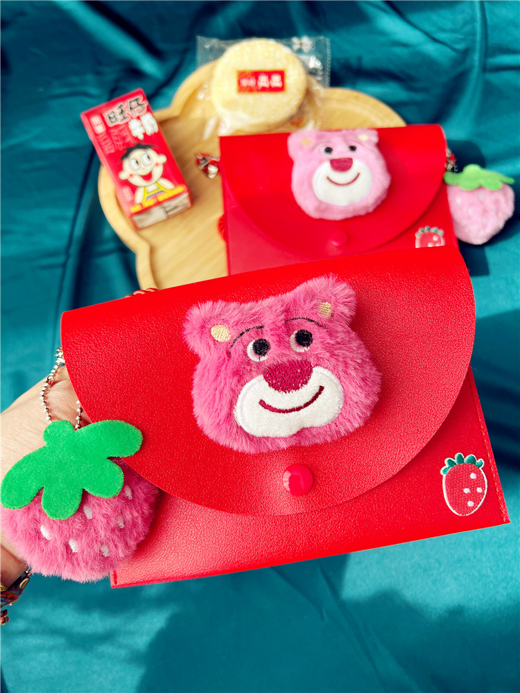 可爱毛绒diy皮质红包袋斜跨可背带挂绳利是封手机包过年儿童拜年