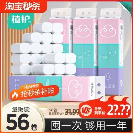 56卷植护无芯卷纸卫生纸家用实惠装宿舍厕所卷筒纸手纸整箱批纸巾