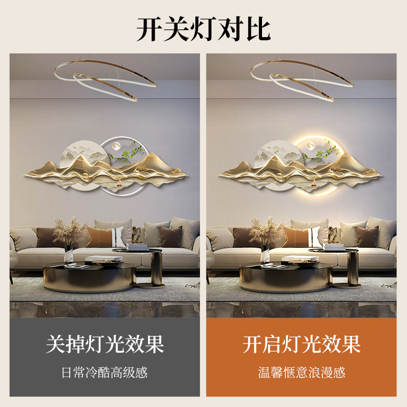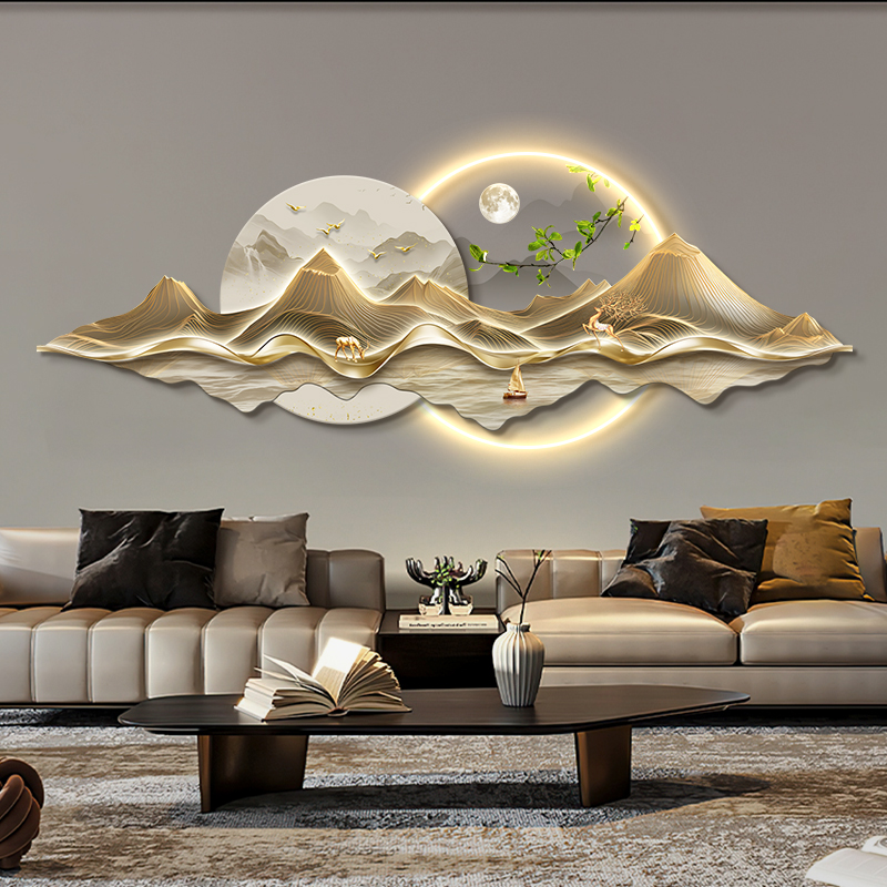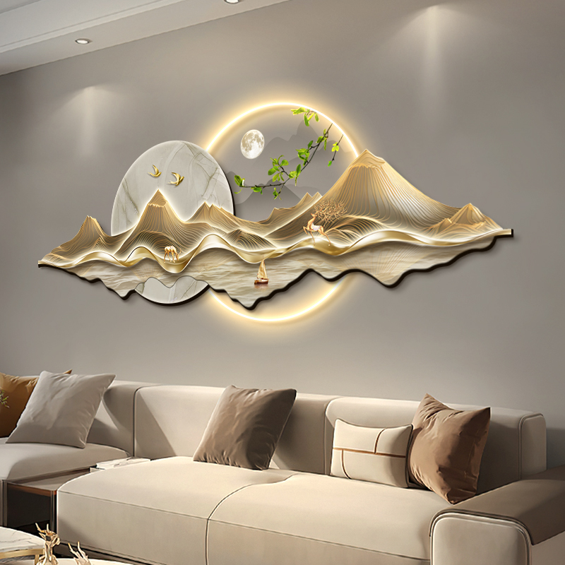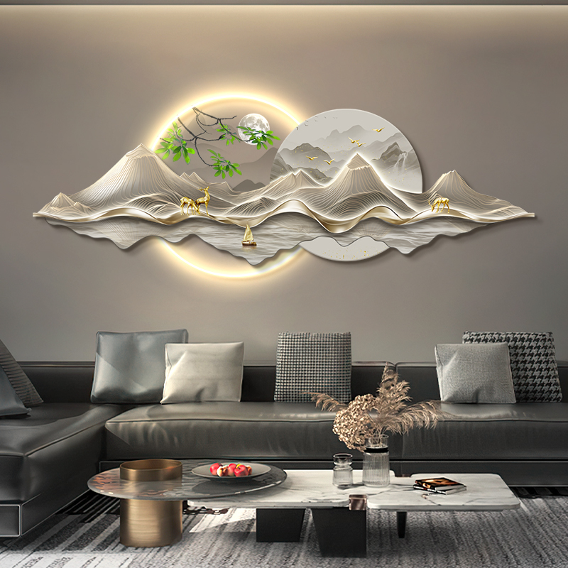 新中式客厅装饰画背有靠山led发光灯画沙发背景墙挂画高级感麋鹿