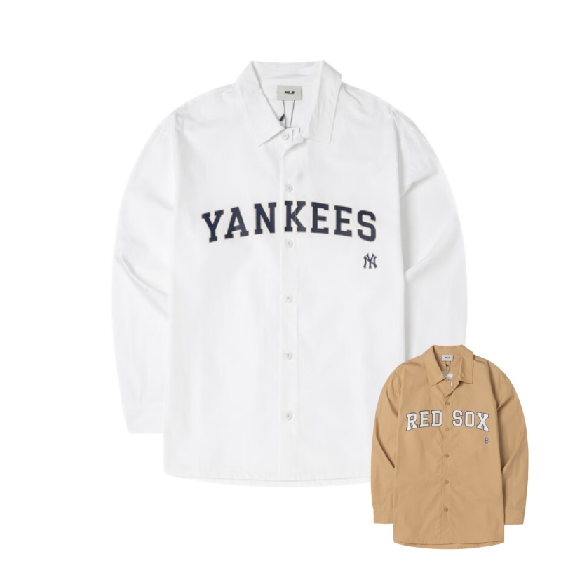 24新款MLB情侣衬衫男女NY复古学院风宽松休闲长袖外套3AWSV0141