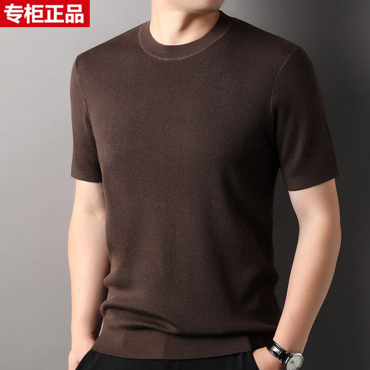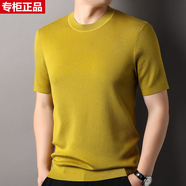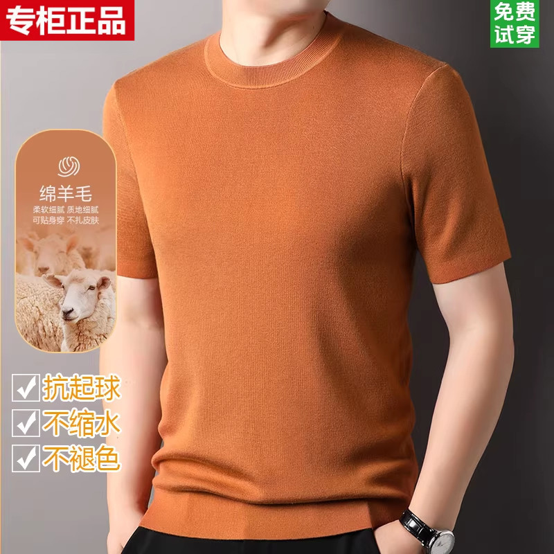 鄂尔多斯市不起球短袖羊毛衫春秋男士半袖白色圆领针织打底衫毛衣