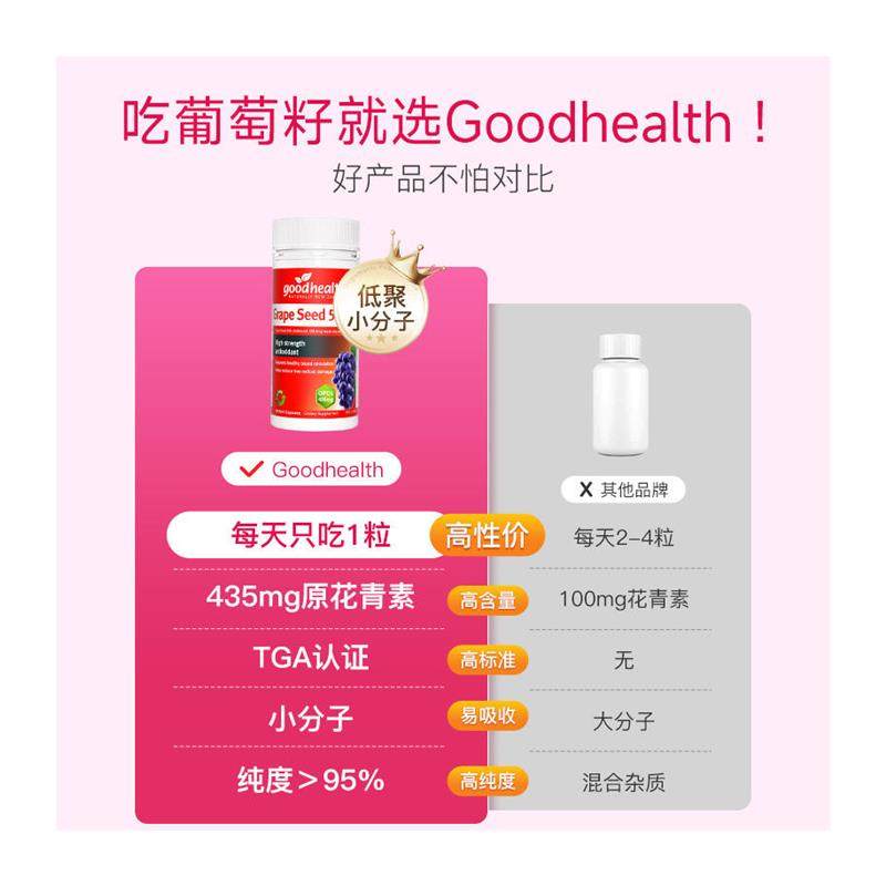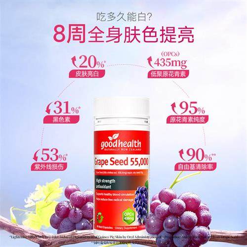 goodhealth葡萄籽胶囊55000mg高浓缩低聚原花青素opc抑黑TGA认证