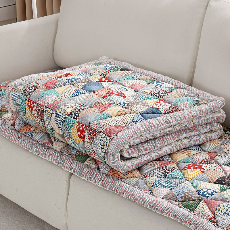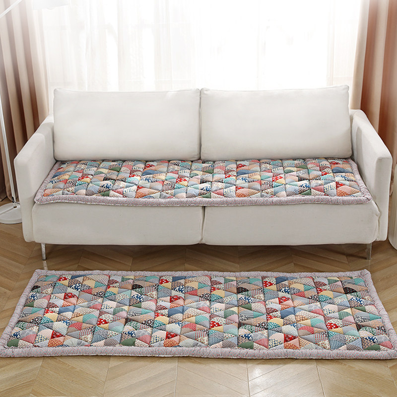韩式纯棉绗缝小清新加厚沙发垫拼接碎花布艺防滑四季通用客厅飘窗