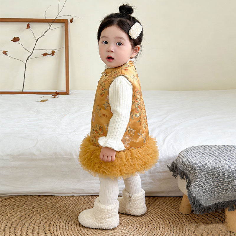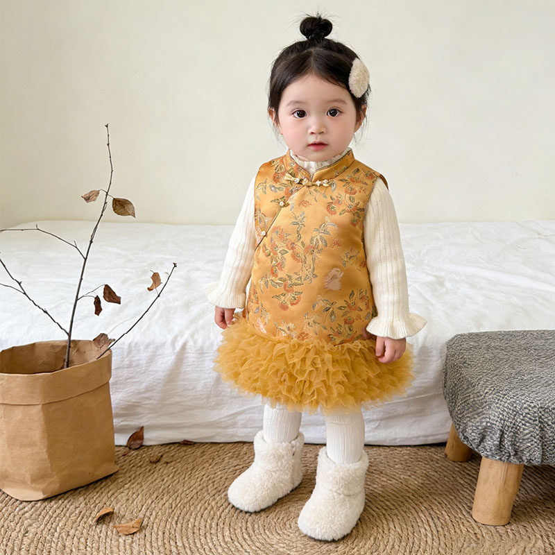 女童连衣裙背心套装裙中国风旗袍套装裙子周岁礼服新年拜年服童装