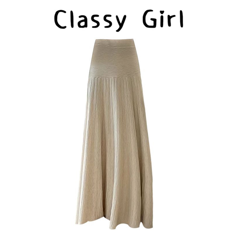 奶fufu毛线针织百褶半身裙女秋冬设计感软糯垂坠感a字大摆伞裙
