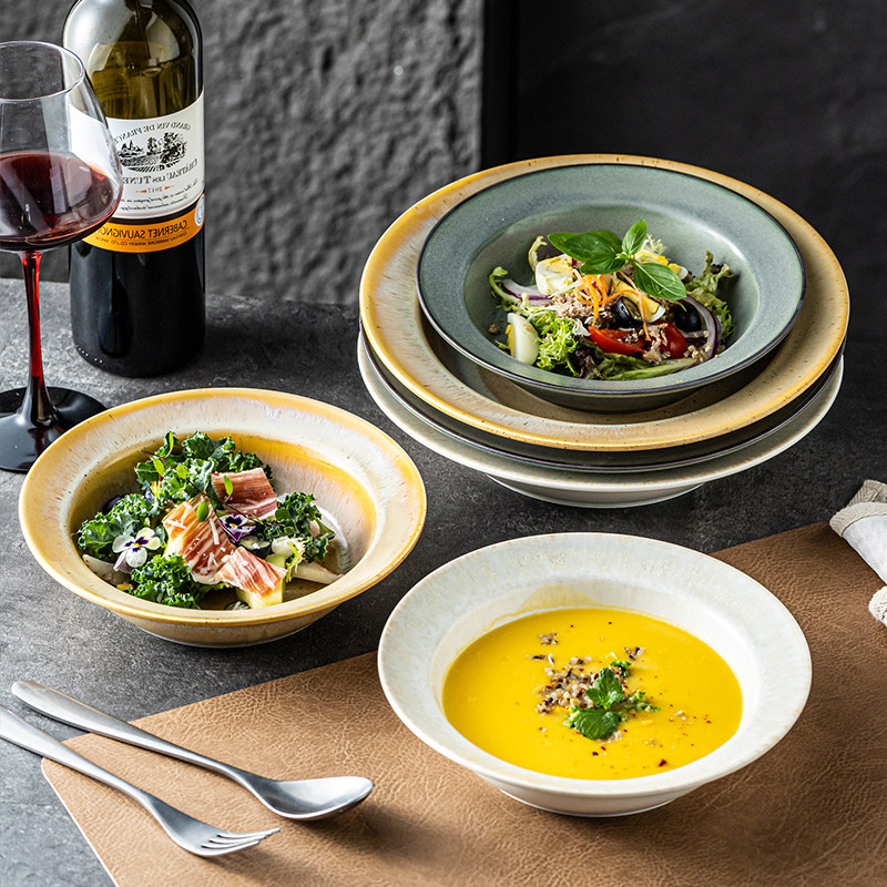 釉下彩汤盘酒店会所商用后厨备菜盘甜品汤盘鱼盘水果盘餐厅专用盘