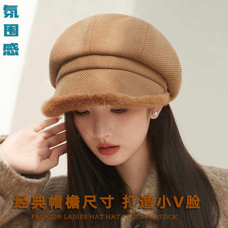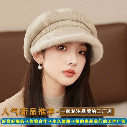 加厚帽子八角帽子女士英伦时尚画家帽秋冬毛线针织帽报童帽贝雷帽