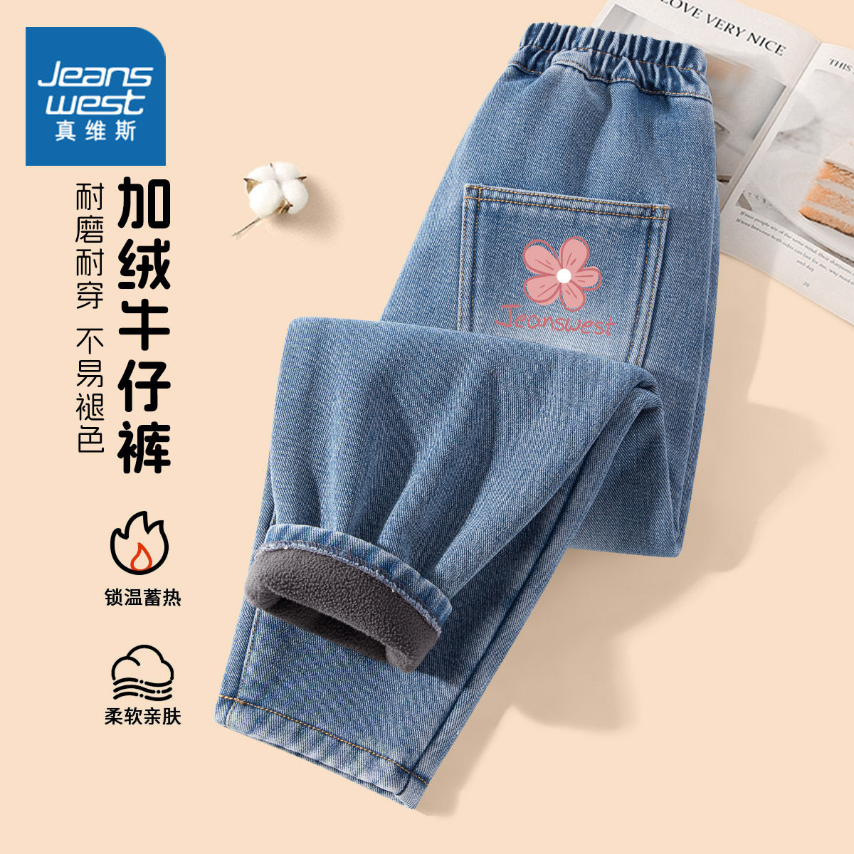 真维斯童装女童加绒牛仔裤冬季2025新款一体绒长裤中大童儿童裤子