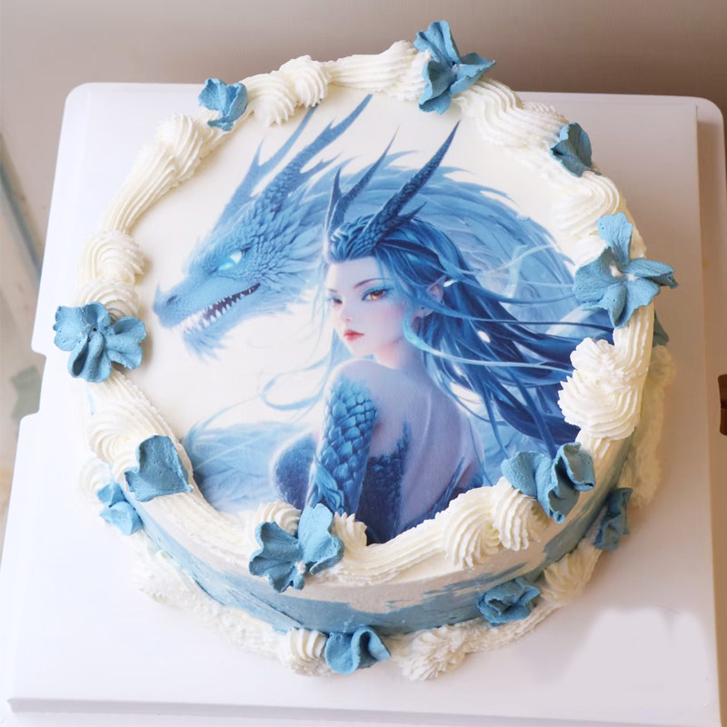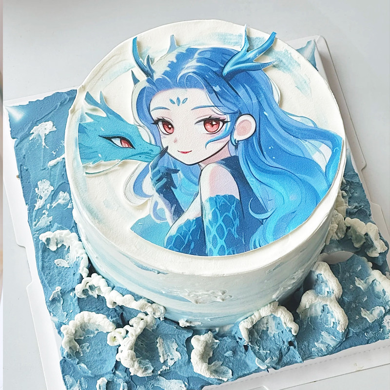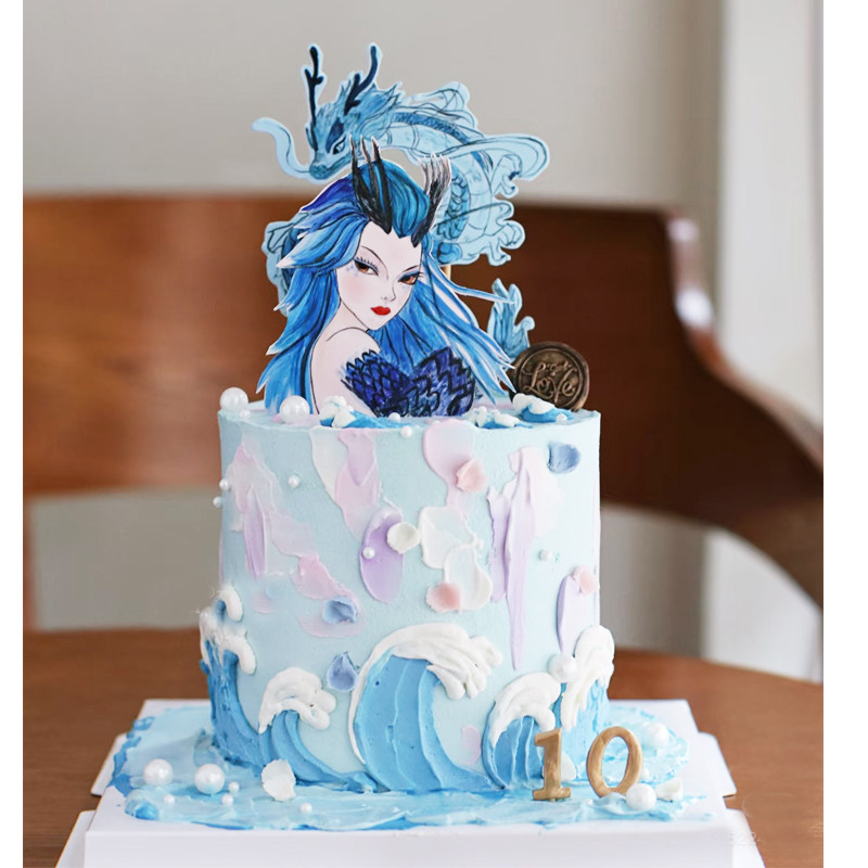 敖闰龙女糯米纸糖纸生日蛋糕装饰敖丙姑姑糖霜敖光定制打印包邮