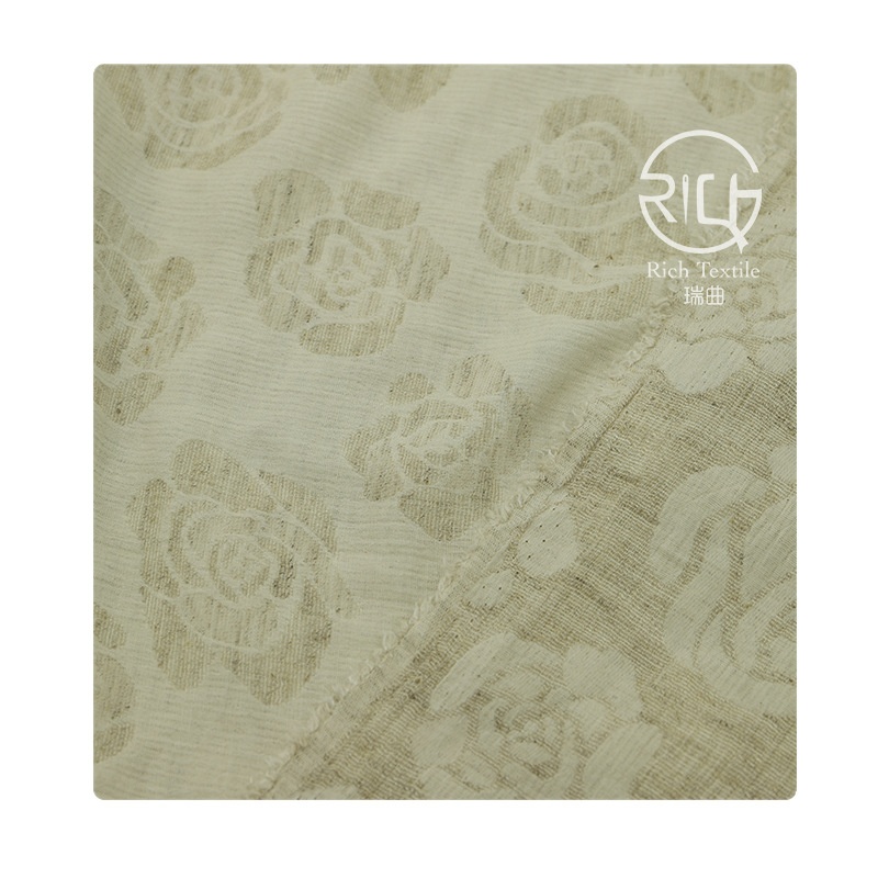 亚麻棉混纺玫瑰提花布 麻本色复古文艺风 女装连衣裙衬衫