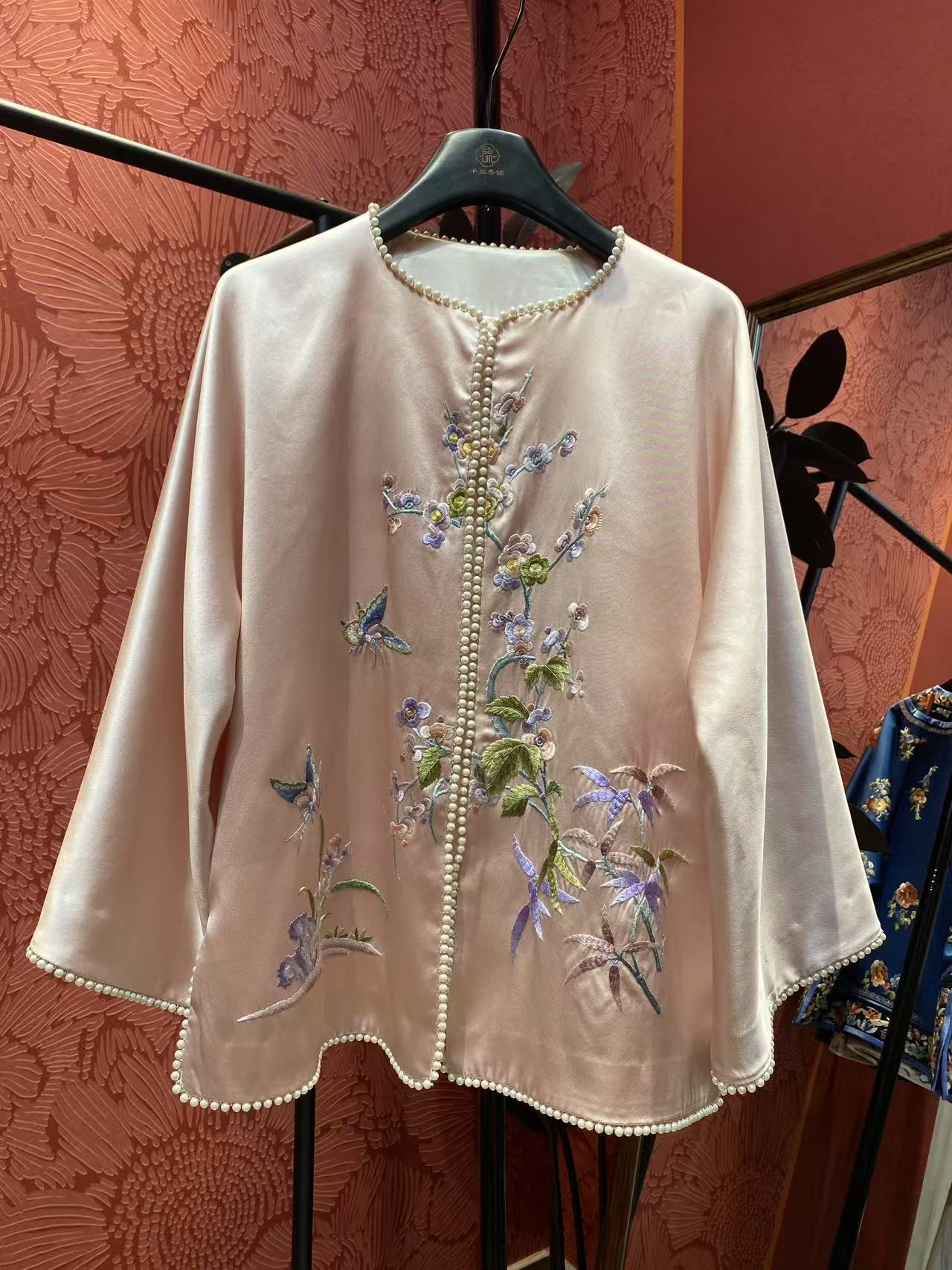 蝶恋花真丝上衣国风手绣苏绣圆领对襟重工满袖复古中国风外套