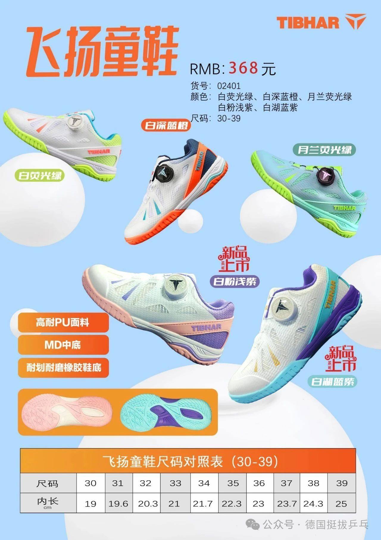 TIBHAR挺拔飞扬乒乓球鞋男女儿童运动鞋牛筋底防滑耐磨专业训练鞋