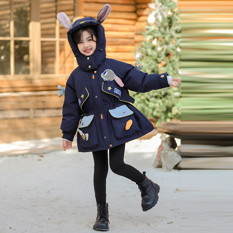 冬装女童兔子警官羽绒服中长款2025新款洋气儿童白鸭绒朱迪厚外套