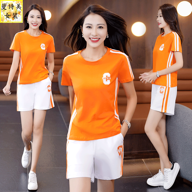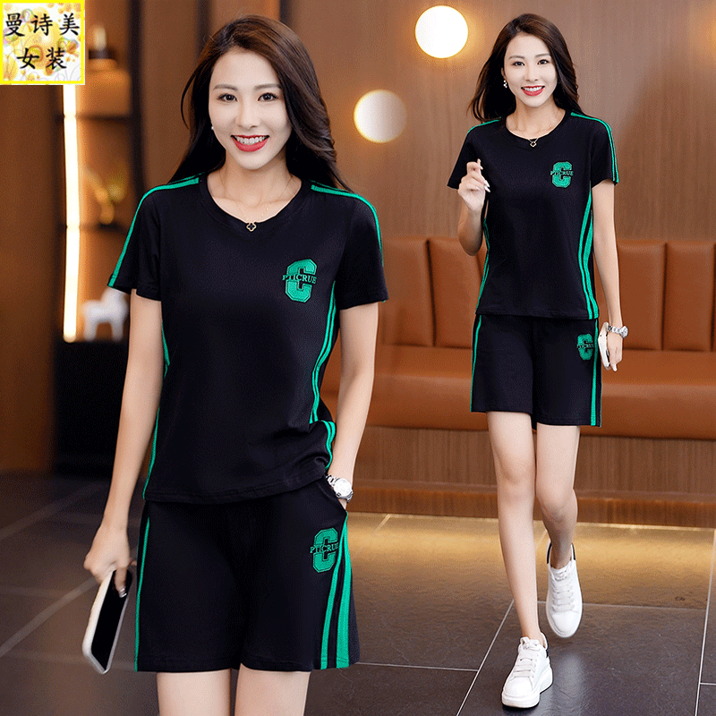 短袖短裤圆领运动服套装女2025新款夏季纯棉洋气休闲五分裤两件套