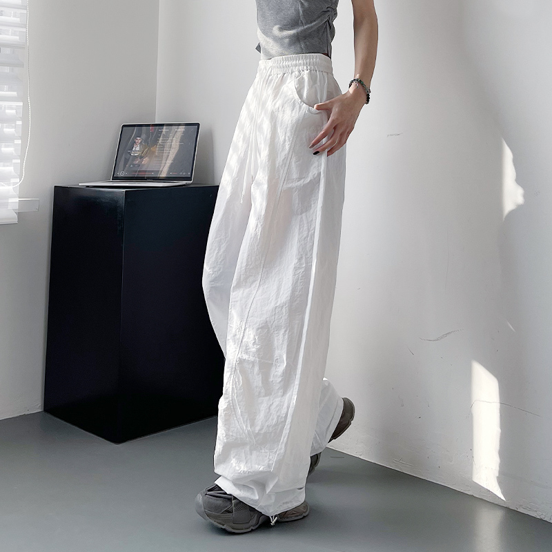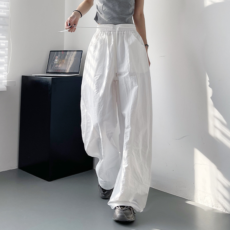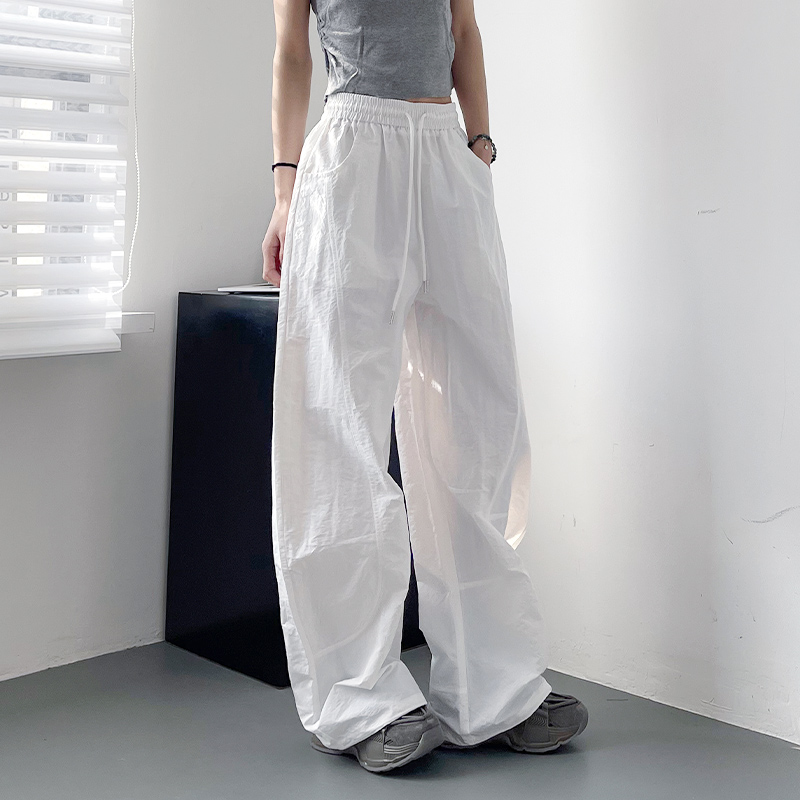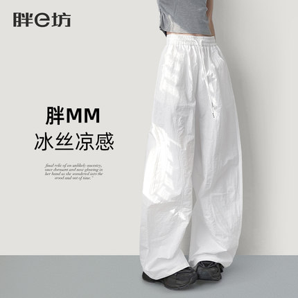胖mm大码白色阔腿裤女夏季薄款百搭200斤显瘦冰丝速干运动工装裤