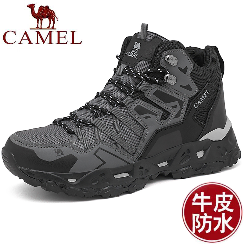 骆驼高帮防水鞋男冬季防滑加绒棉鞋徒步登山鞋户外真皮保暖运动鞋