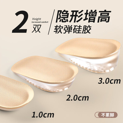 增高鞋垫女硅胶隐形不累脚内增高男1cm3cm单鞋后跟垫增高垫半垫