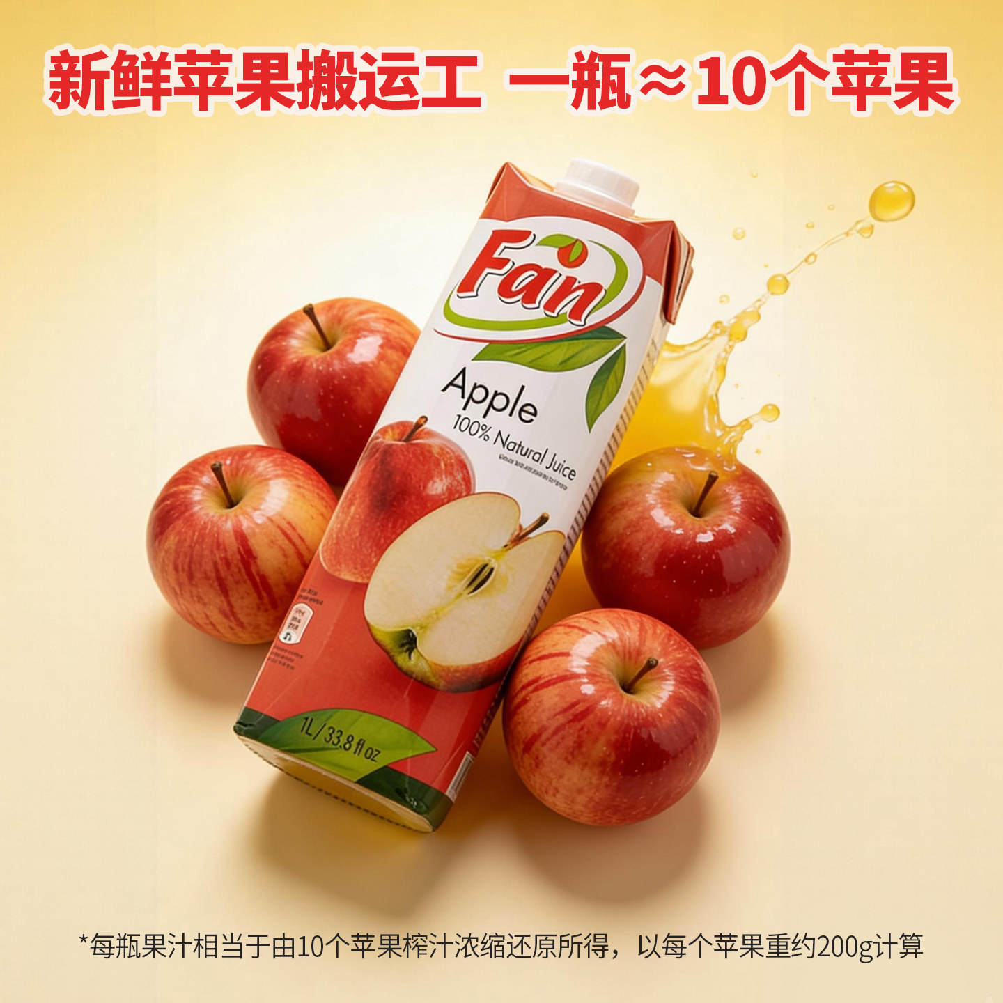 Fan纯果芬苹果汁饮料1L塞浦路斯原装进口果汁商用酒席婚礼果蔬汁