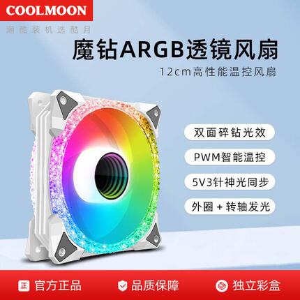 COOLMOON魔钻散热风扇12CM电脑5V神光同步argb温控超静音机箱风扇