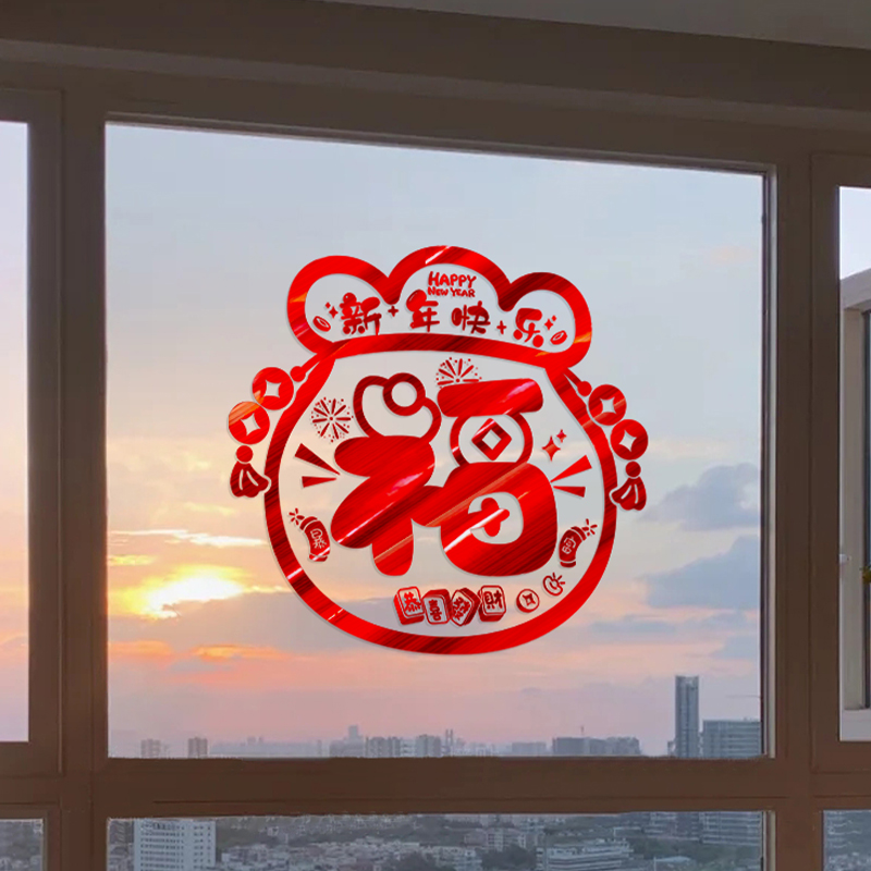 新年装饰贴纸窗花2025新款新年快乐橱窗贴画蛇年过年玻璃贴纸门贴