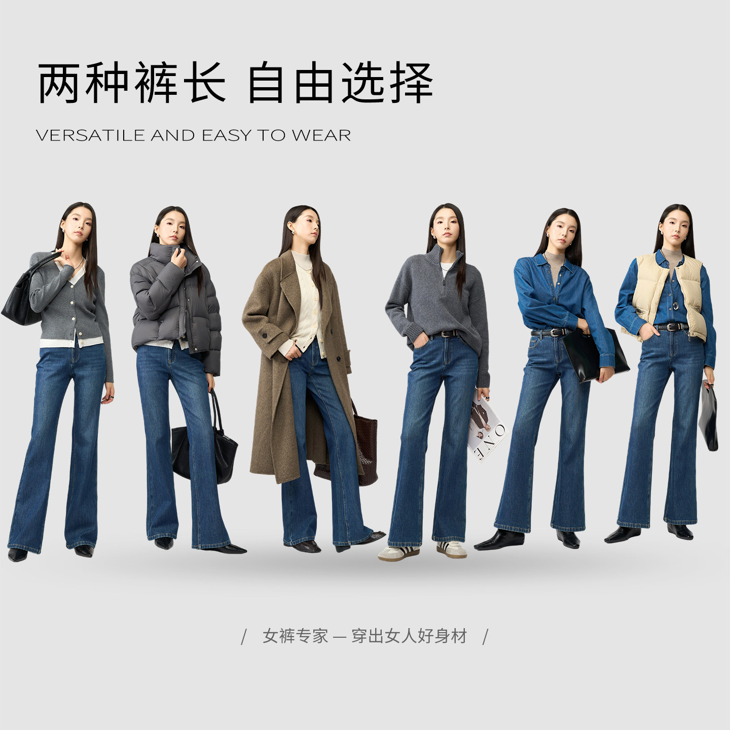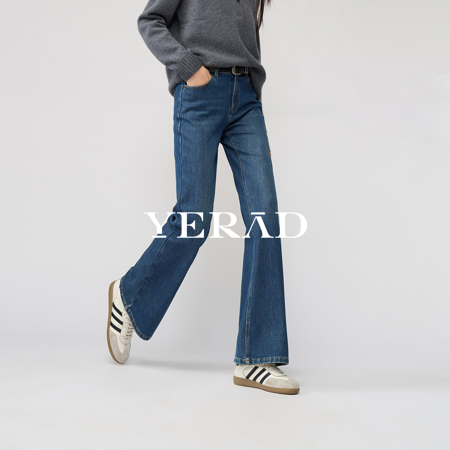 娅丽达加绒喇叭牛仔裤女