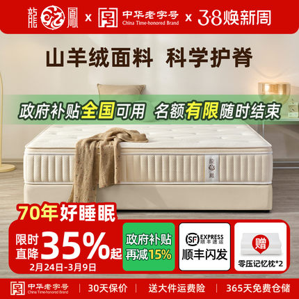 龙凤床垫席梦思家用天然乳胶厚双人硬垫黄麻护脊椎独立弹簧 臻美