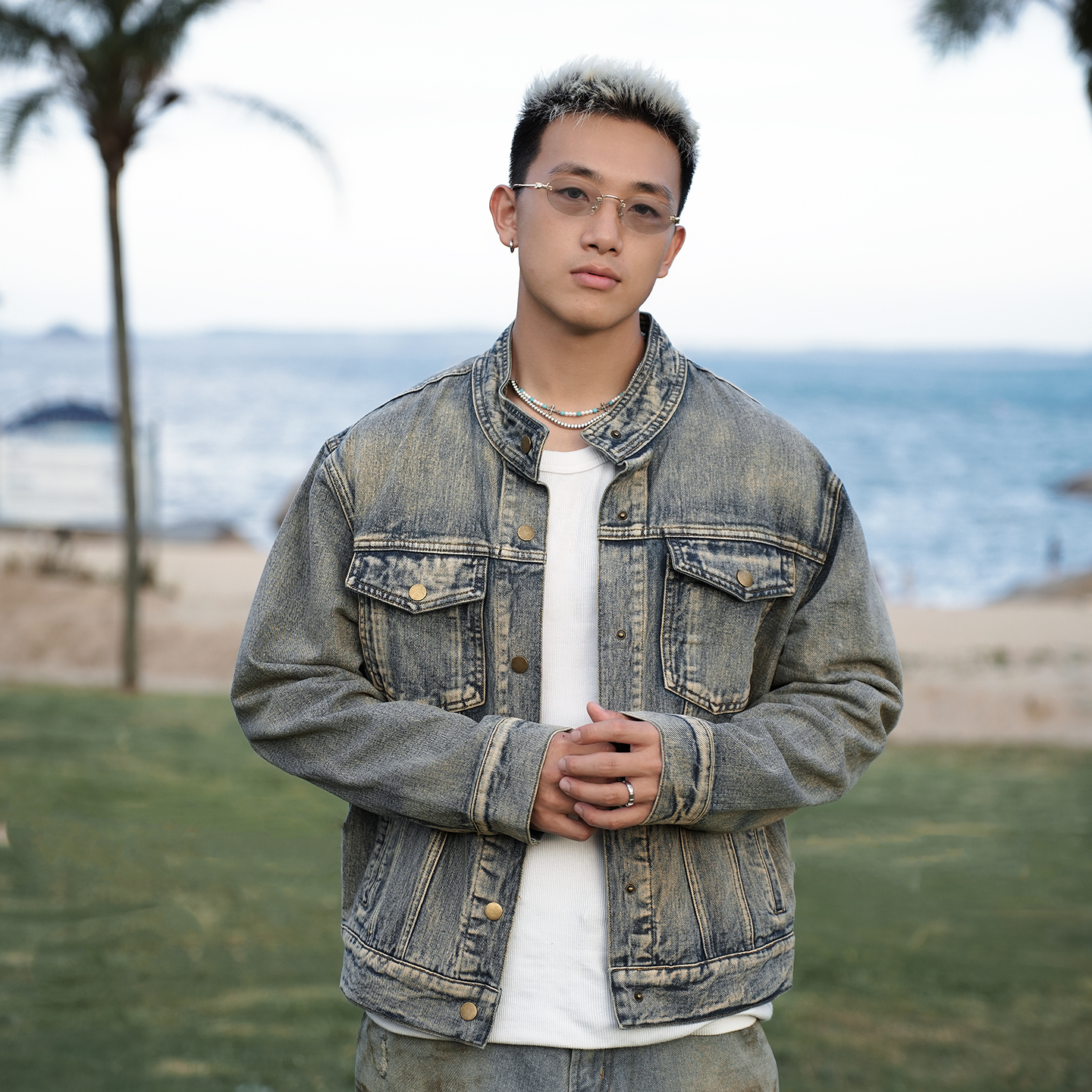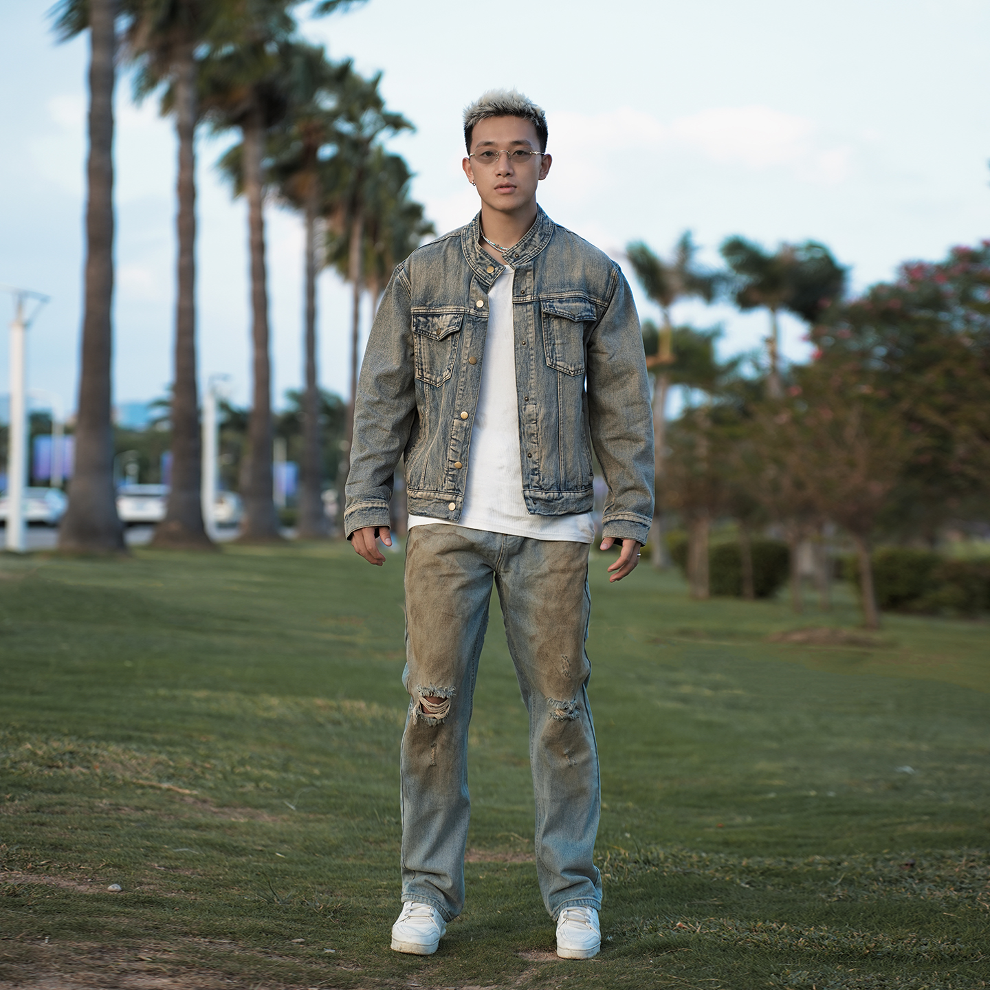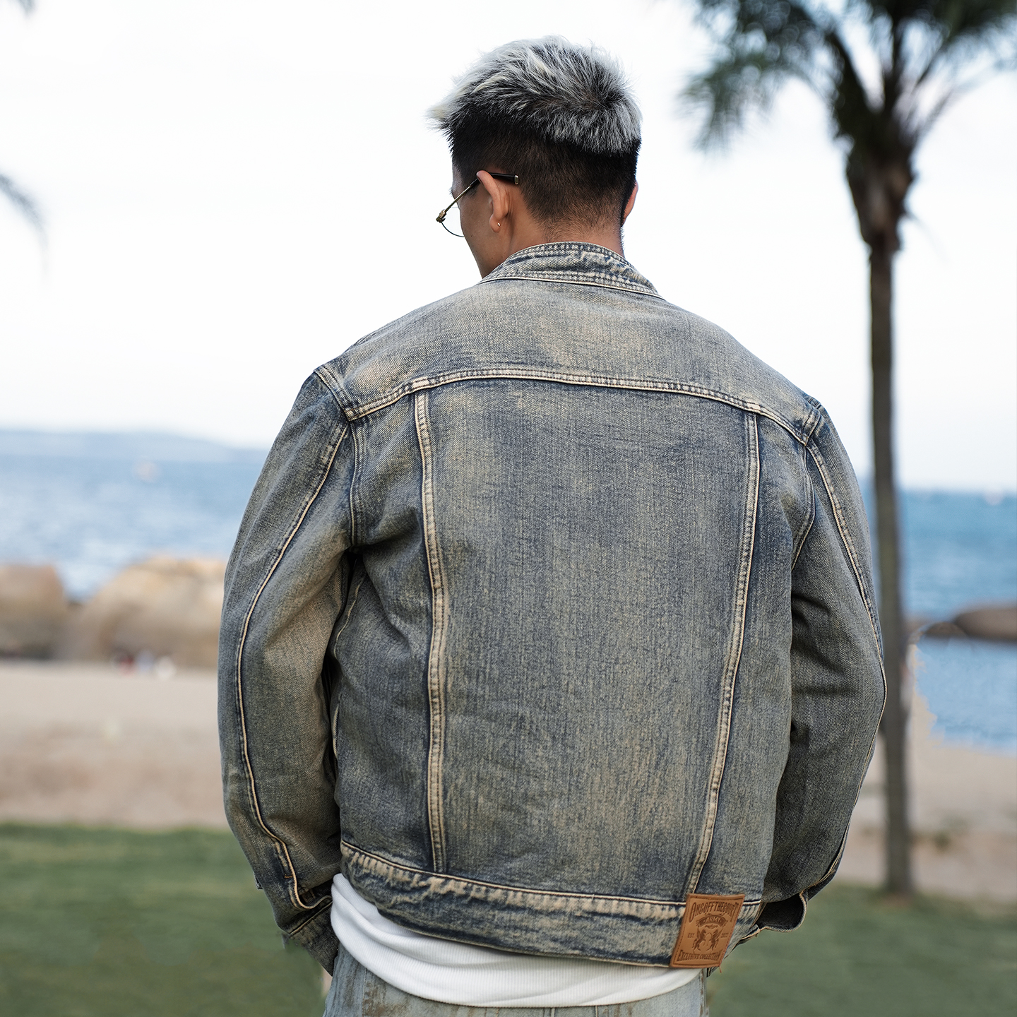 OOTC 美式休闲复古泥染牛仔外套秋冬街头夹克上衣牛仔短外套