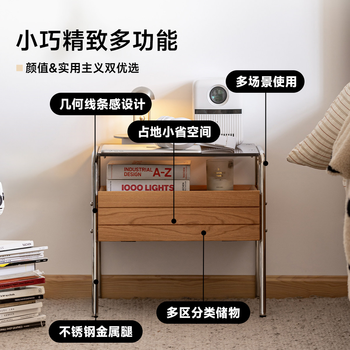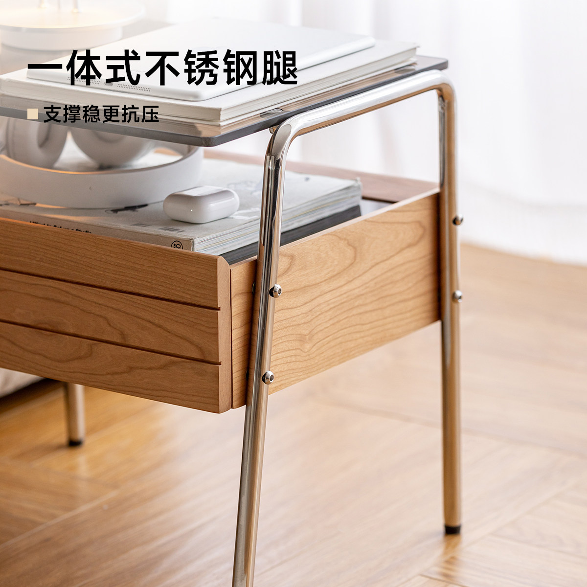 出乎家具镜湖床头柜樱桃木边柜北欧卧室小户型家用实木收纳床边柜