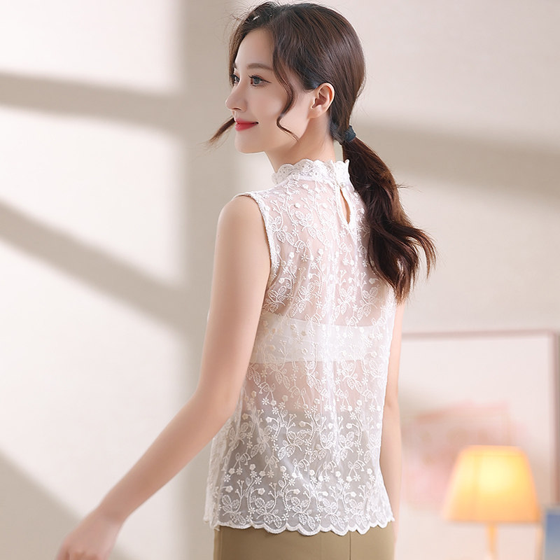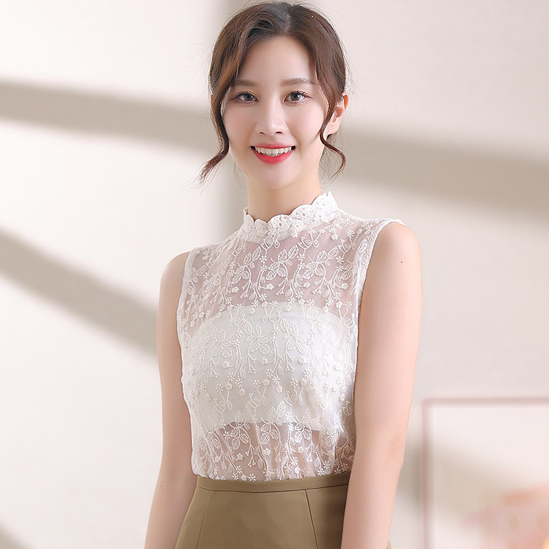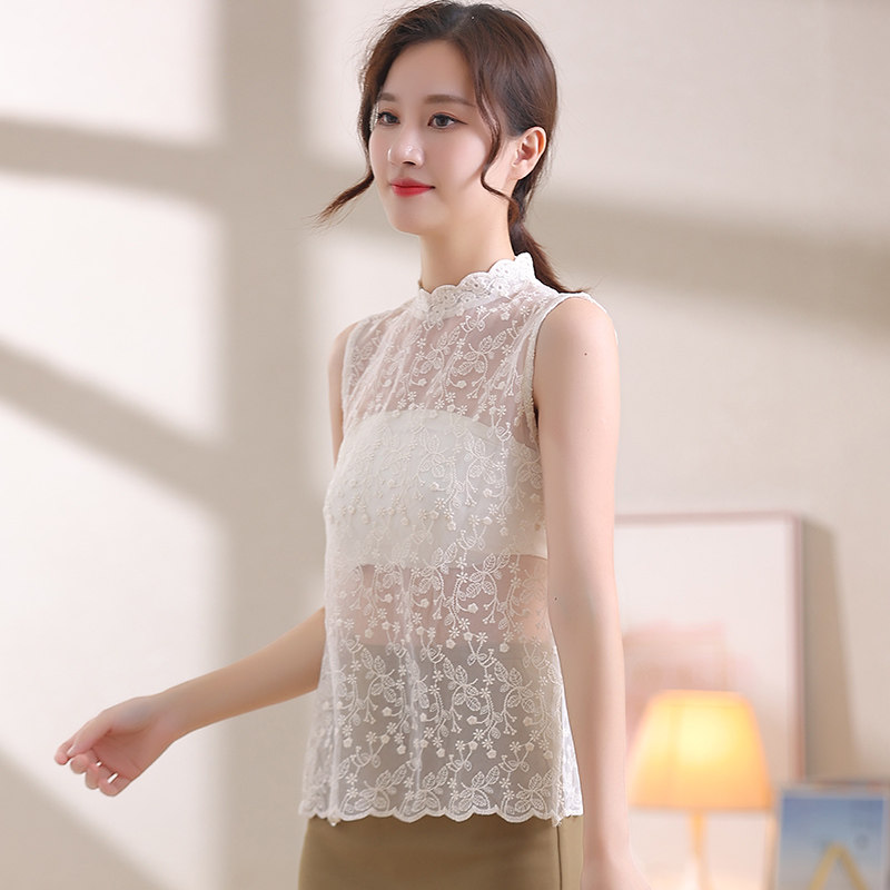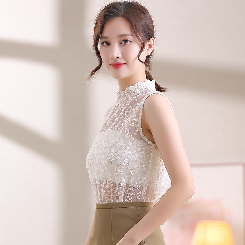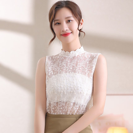 2025春秋新款立领蕾丝无袖打底背心女衬衫毛衣罩衫镂空洋气假领子