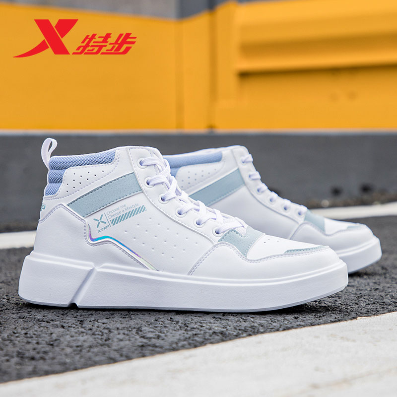 特步女鞋高帮板鞋秋季新款休闲潮鞋学生空军一号运动鞋女小白鞋子
