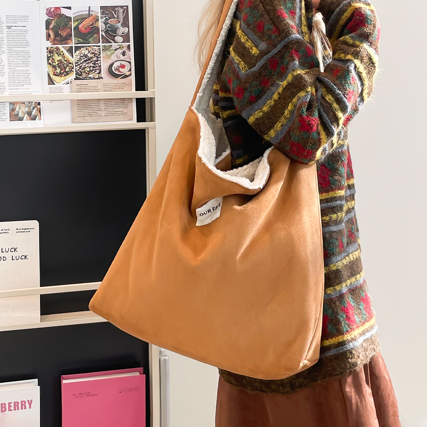 羊羔毛绒绒包包女式2025新款秋冬通勤托特包大容量单肩斜挎水桶包